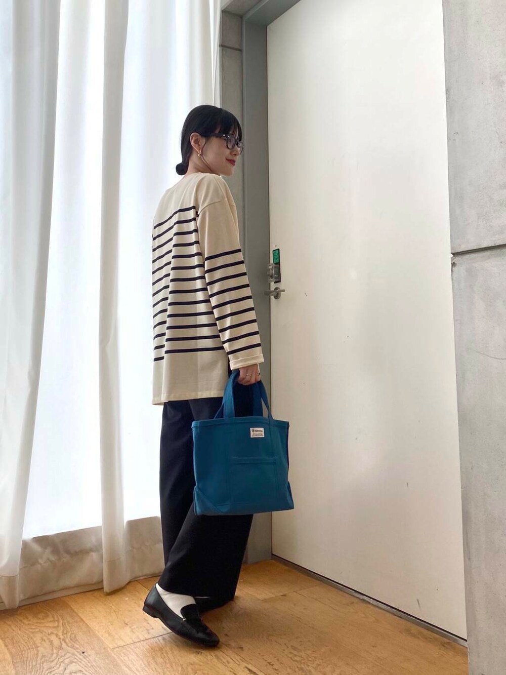 ラフになりすぎないようにタックの入ったパンツとローファーを合わせて少しでもきれい見えを意識しました♩