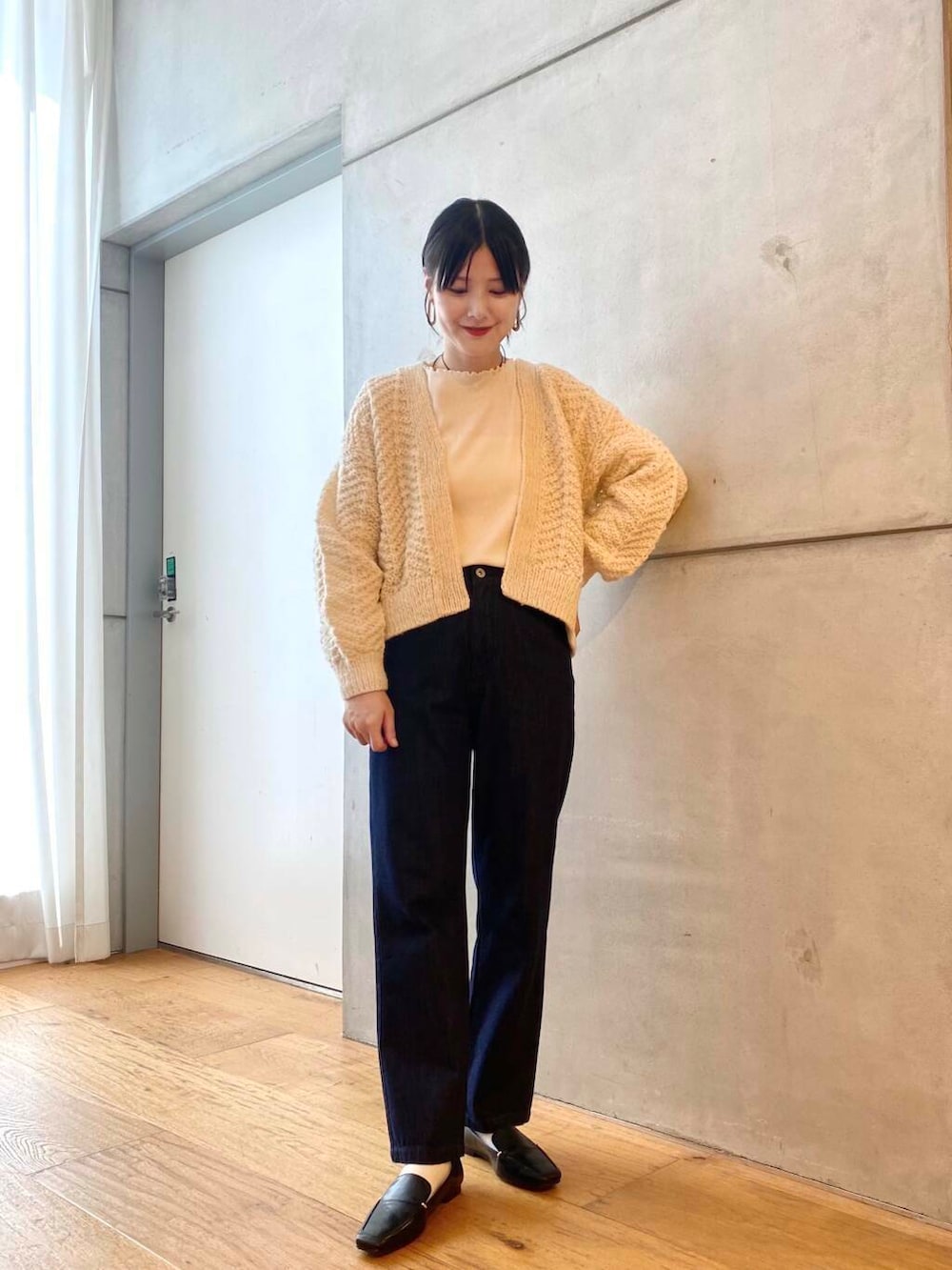 カーディガンはショート丈で抜け感のあるシルエットがとてもかわいいです◎