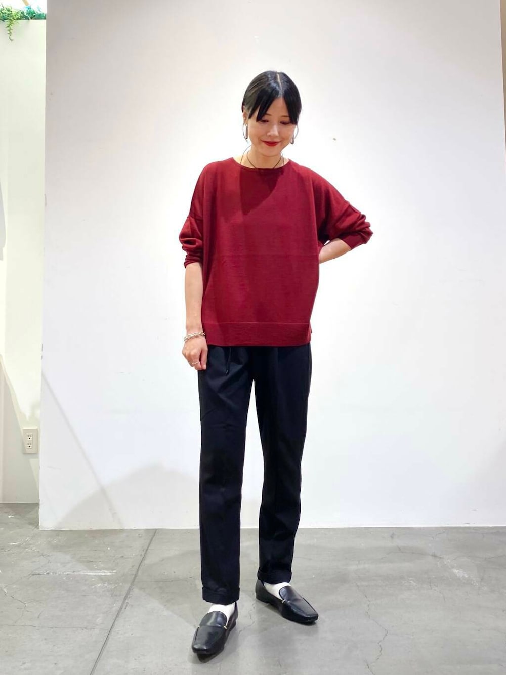 ワイドなシルエットですが、落ち感があるのですっきり着られます♩