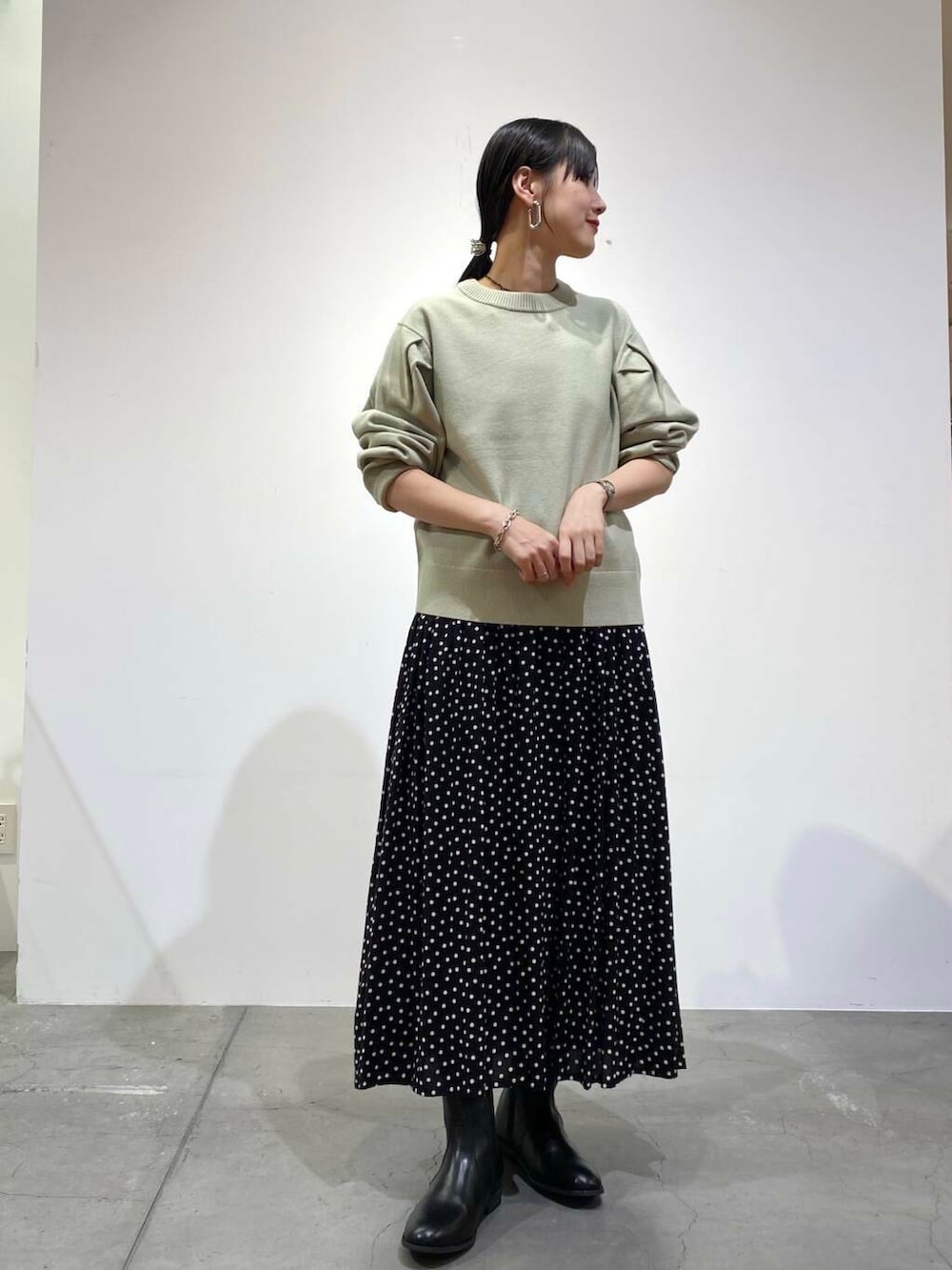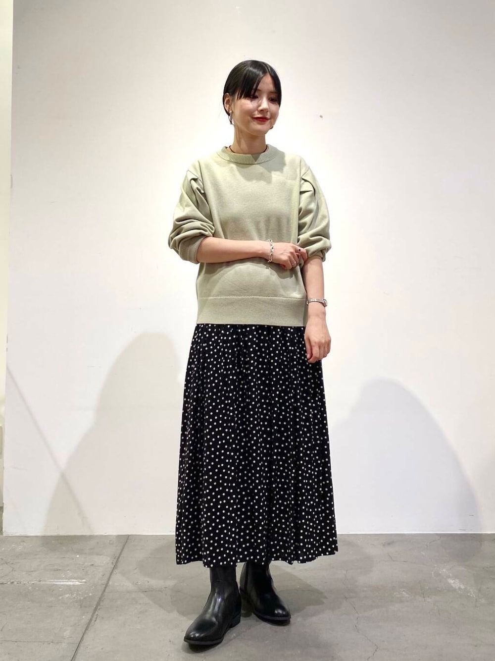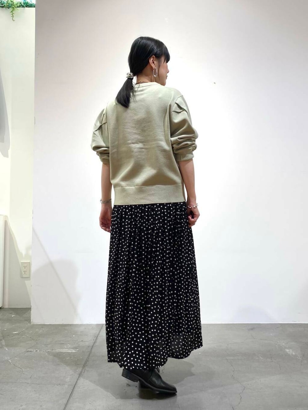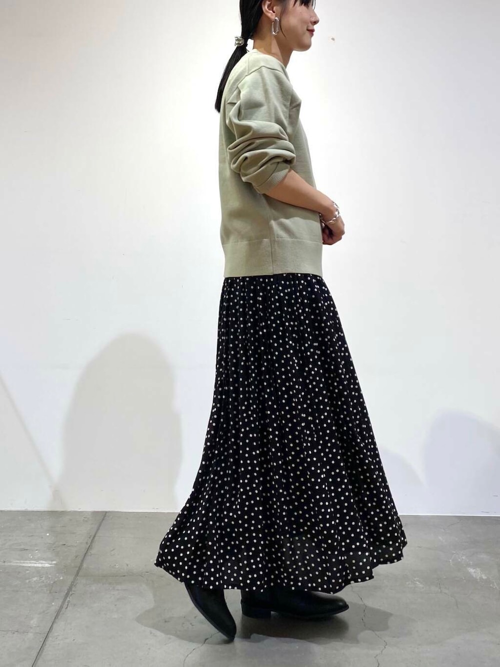 ドットのスカートは落ち感があり広がりすぎずシルエットがとてもきれいです!