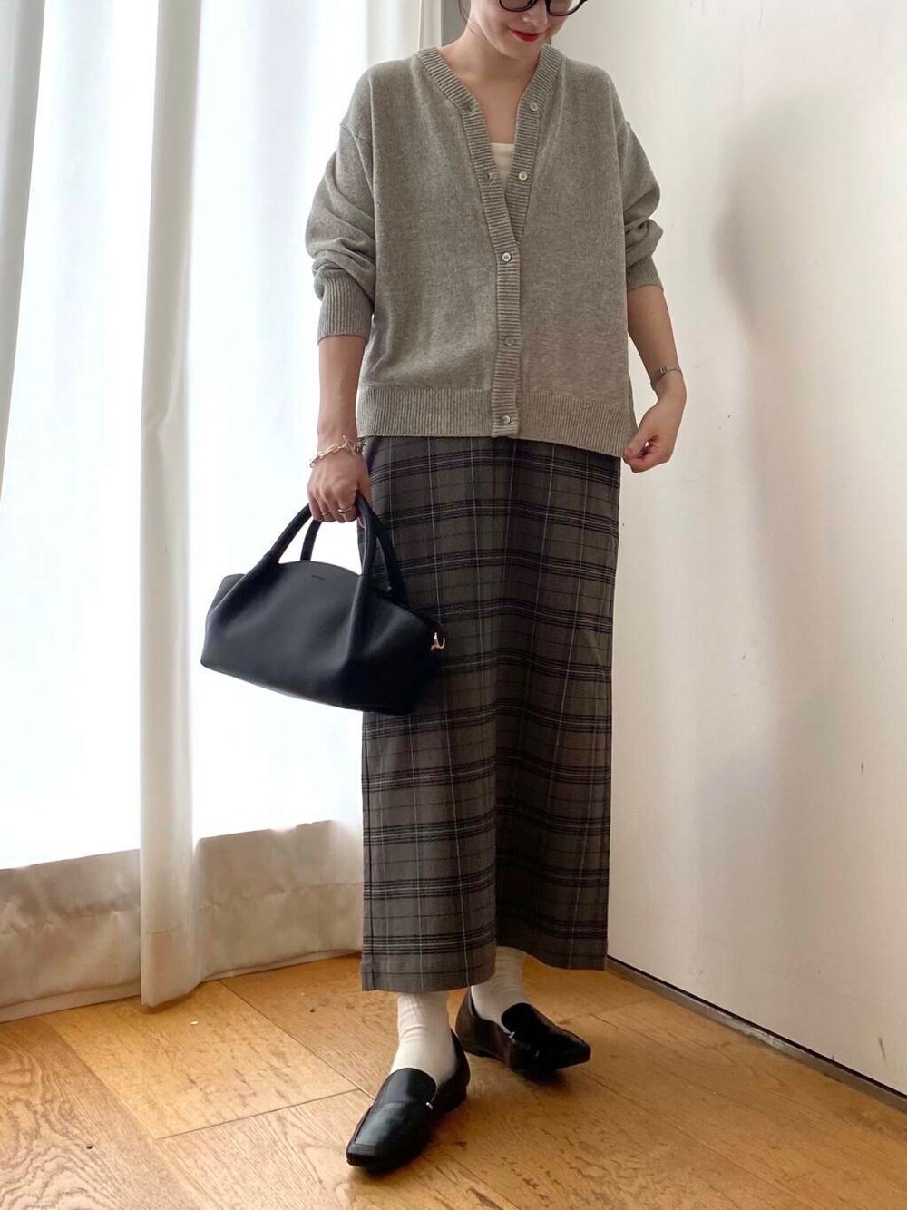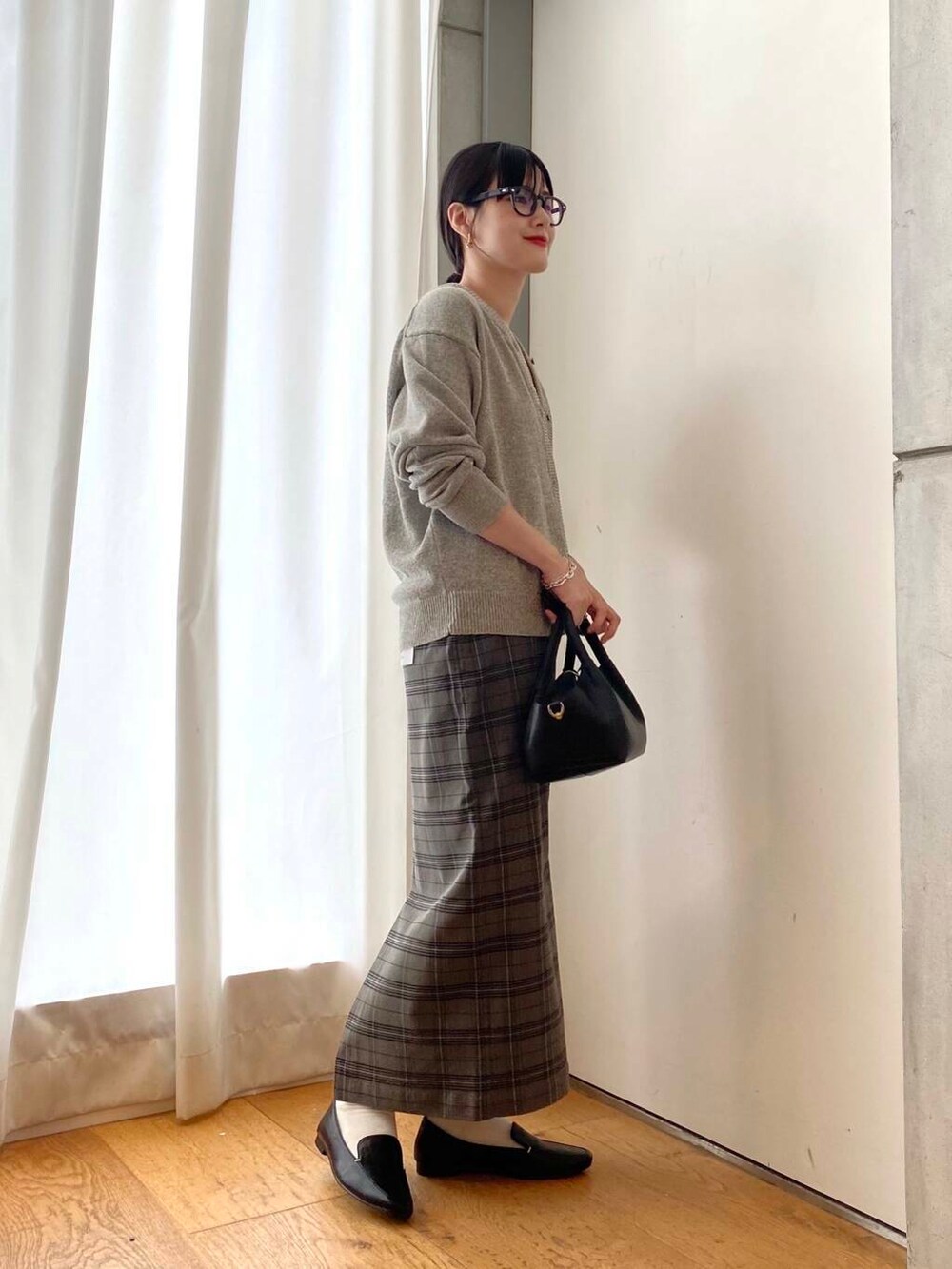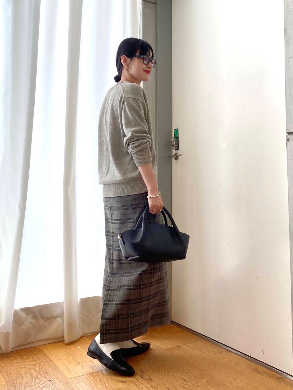 チェックのスカートと合わせて秋冬らしくスタイリングしました◎