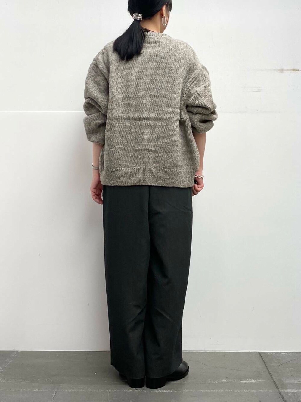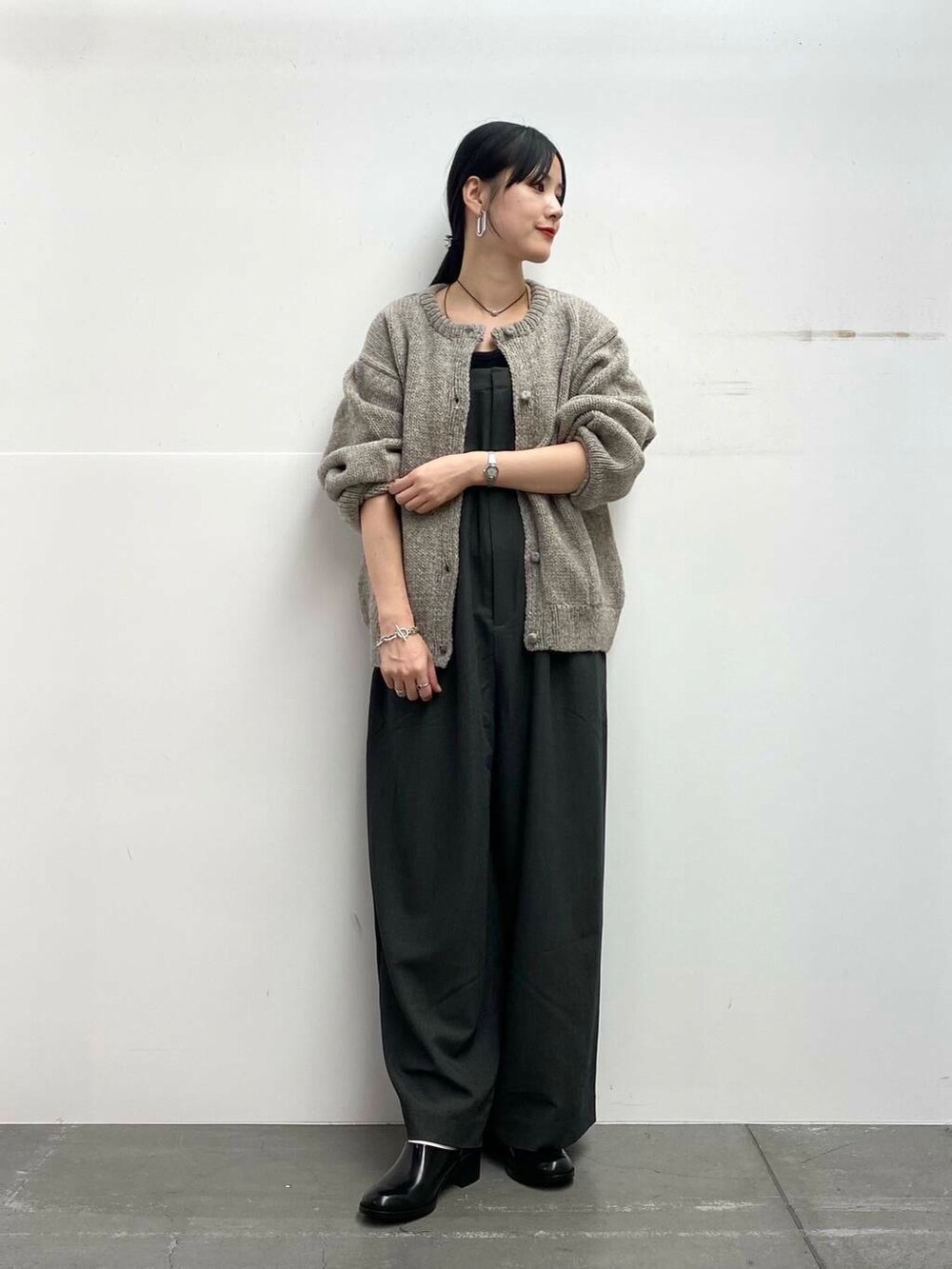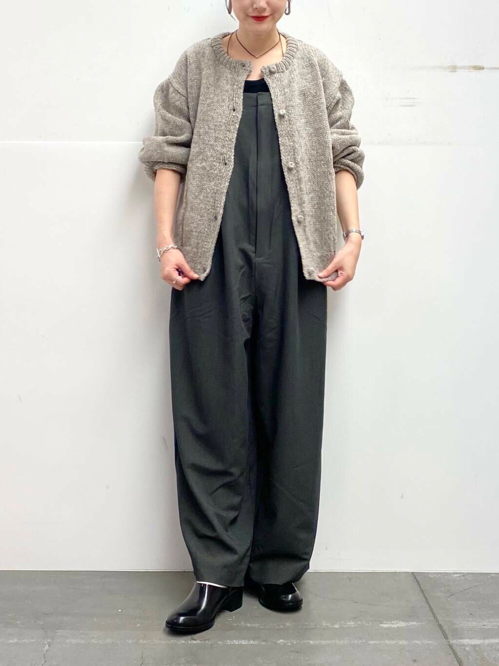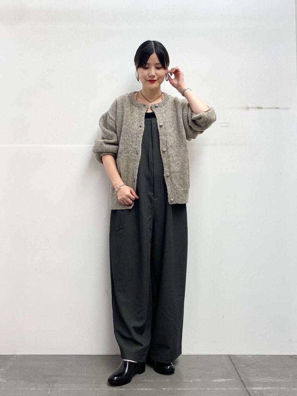 もこもこなカーディガンと合わせてきれいめカジュアルなスタイリングです◎