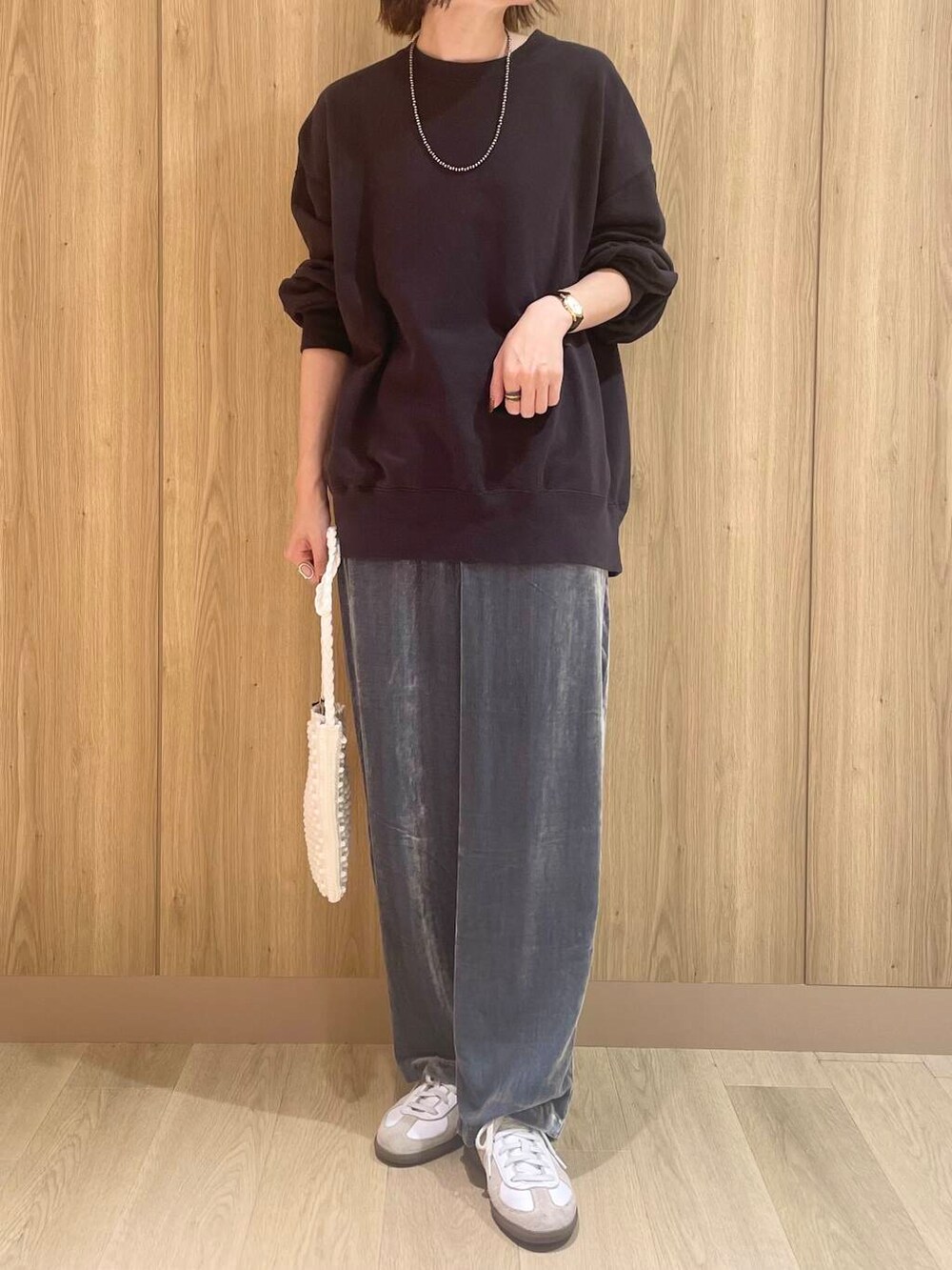 サイズ展開がありユニセックスで着用できるスウェットです。私はゆるっと丈長めが好みなのでサイズ2を着用しております。スウェットってラフな印象をお持ちの方も多いかと思いますが、こちらはドライタッチなややハリのある生地感で大人の雰囲気が出てキレイめなコーディネートにもハマるスウェットです!かなり肉厚というわけではないので、涼しくなってきた今から本格的な冬場まで長く使えるアイテムです◎パンツ、スカートどんなボトムスにもあうシルエットで日々のコーディネートに取り入れやすい1着です!