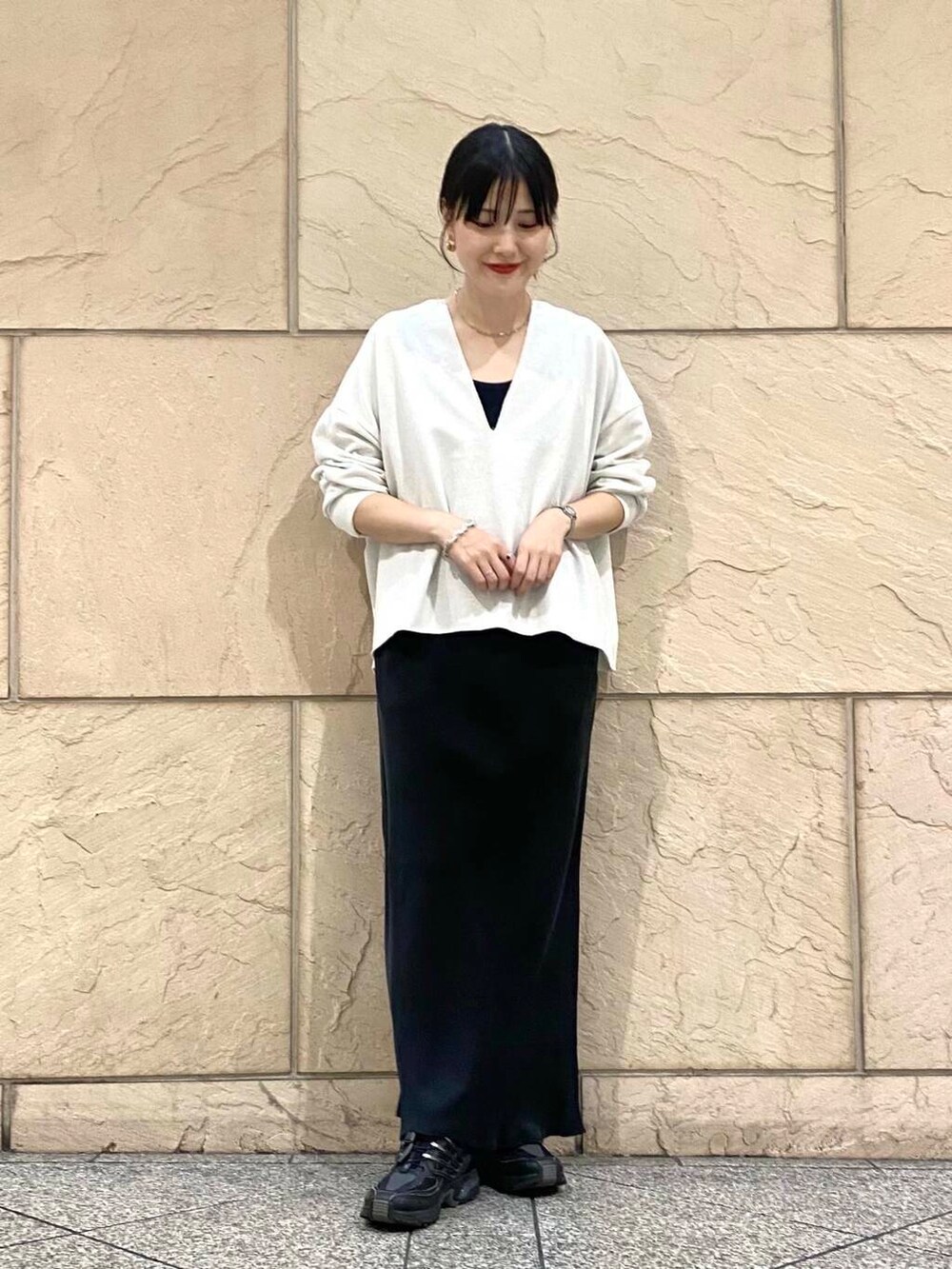 Vネックなのもきれいめな印象で着られるので、ラフにならずおしゃれ見えします◎