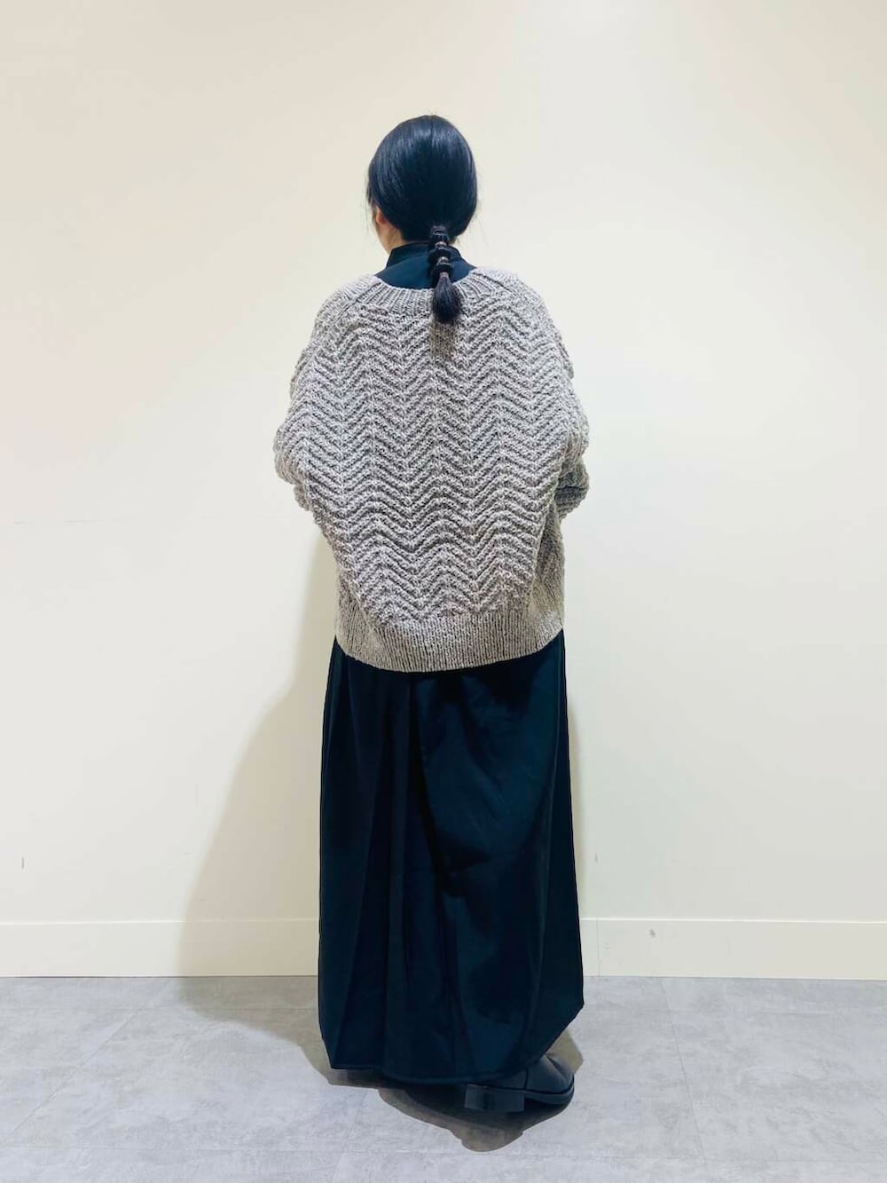 ヘリンボン柄の編み目が印象的で、シンプルなアイテムに羽織るだけでコーディネートのアクセントになります!