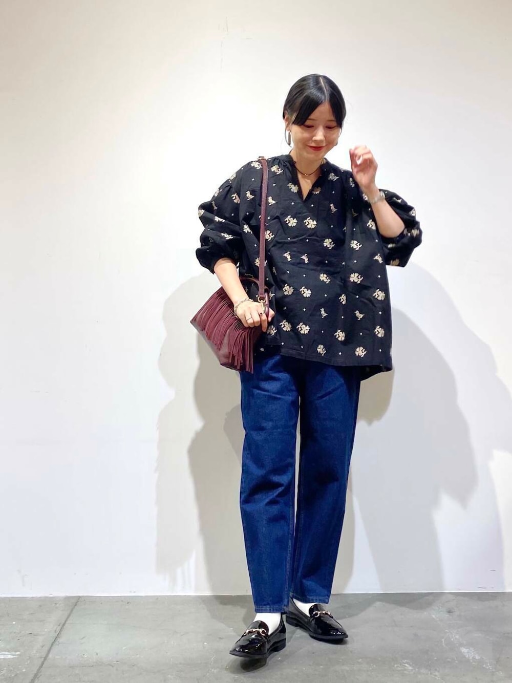 ブラウスはかぐれらしいデザインでナチュラルな印象に◎