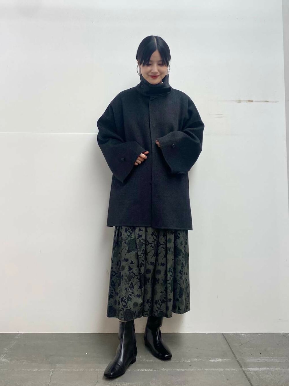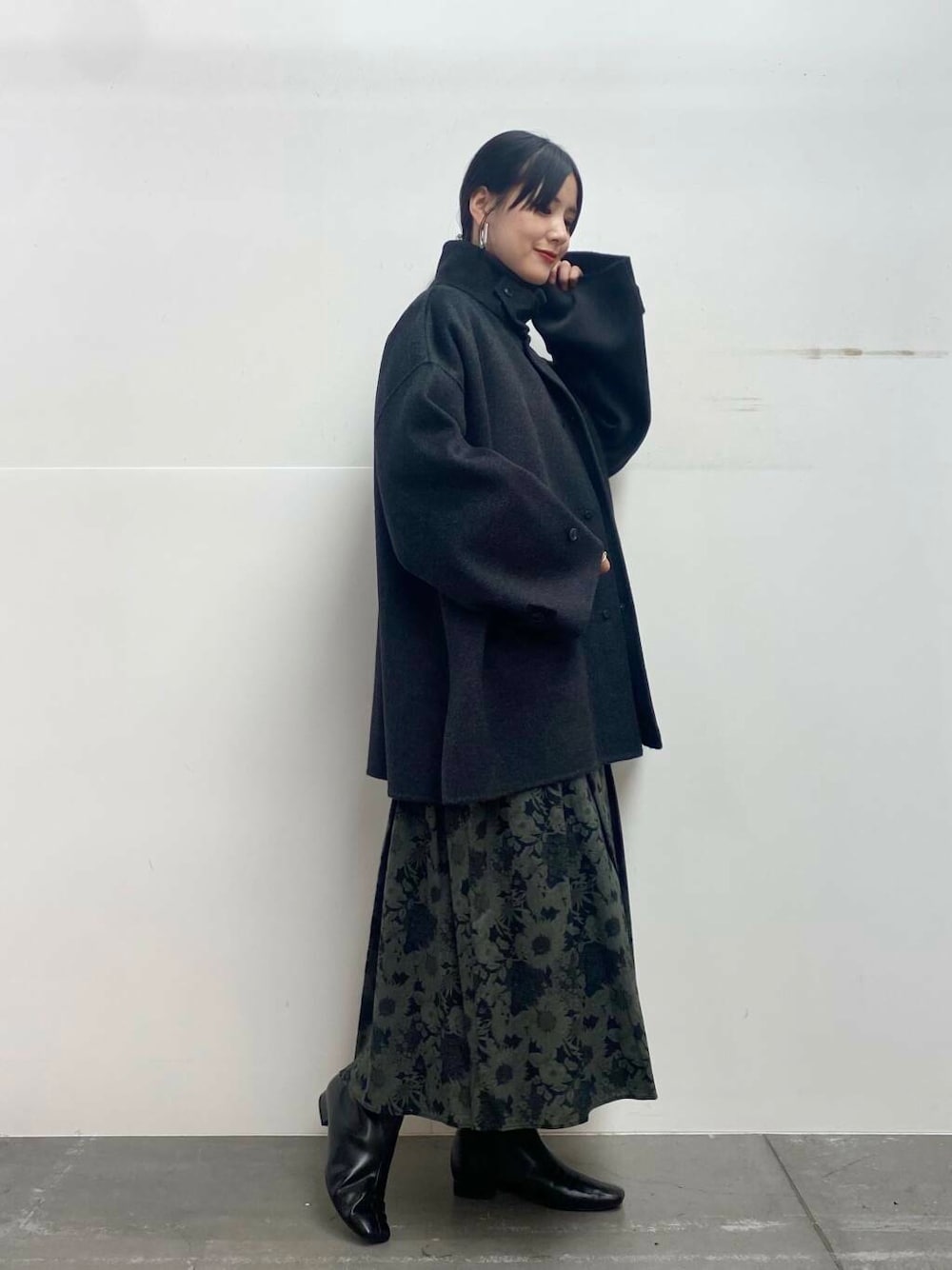 アウターはスタンドカラーのデザインが今っぽい印象に◎