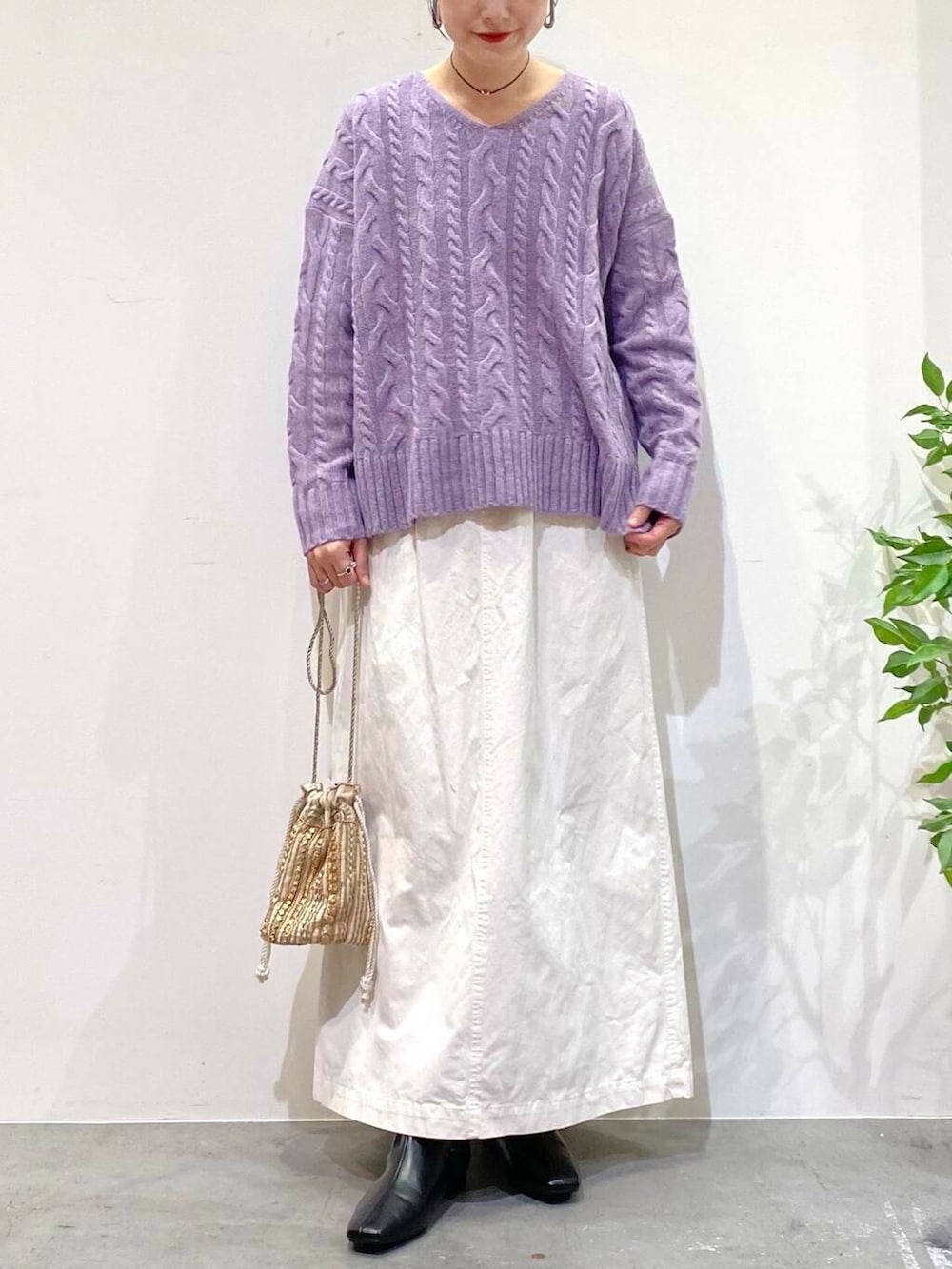 アラン柄ですがVネックなので女性らしくお召しいただけます!