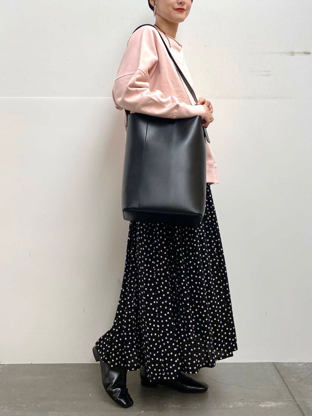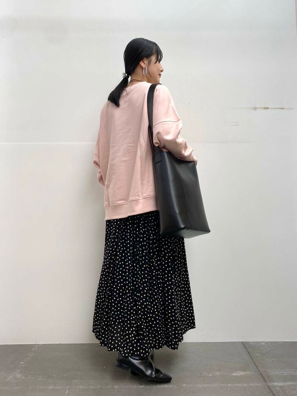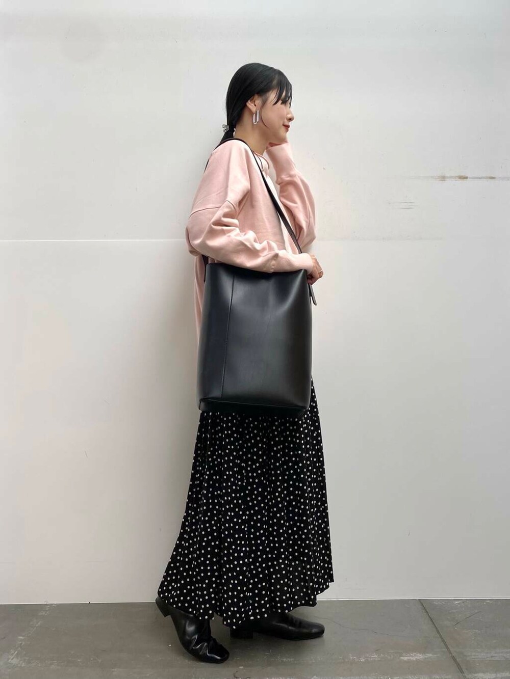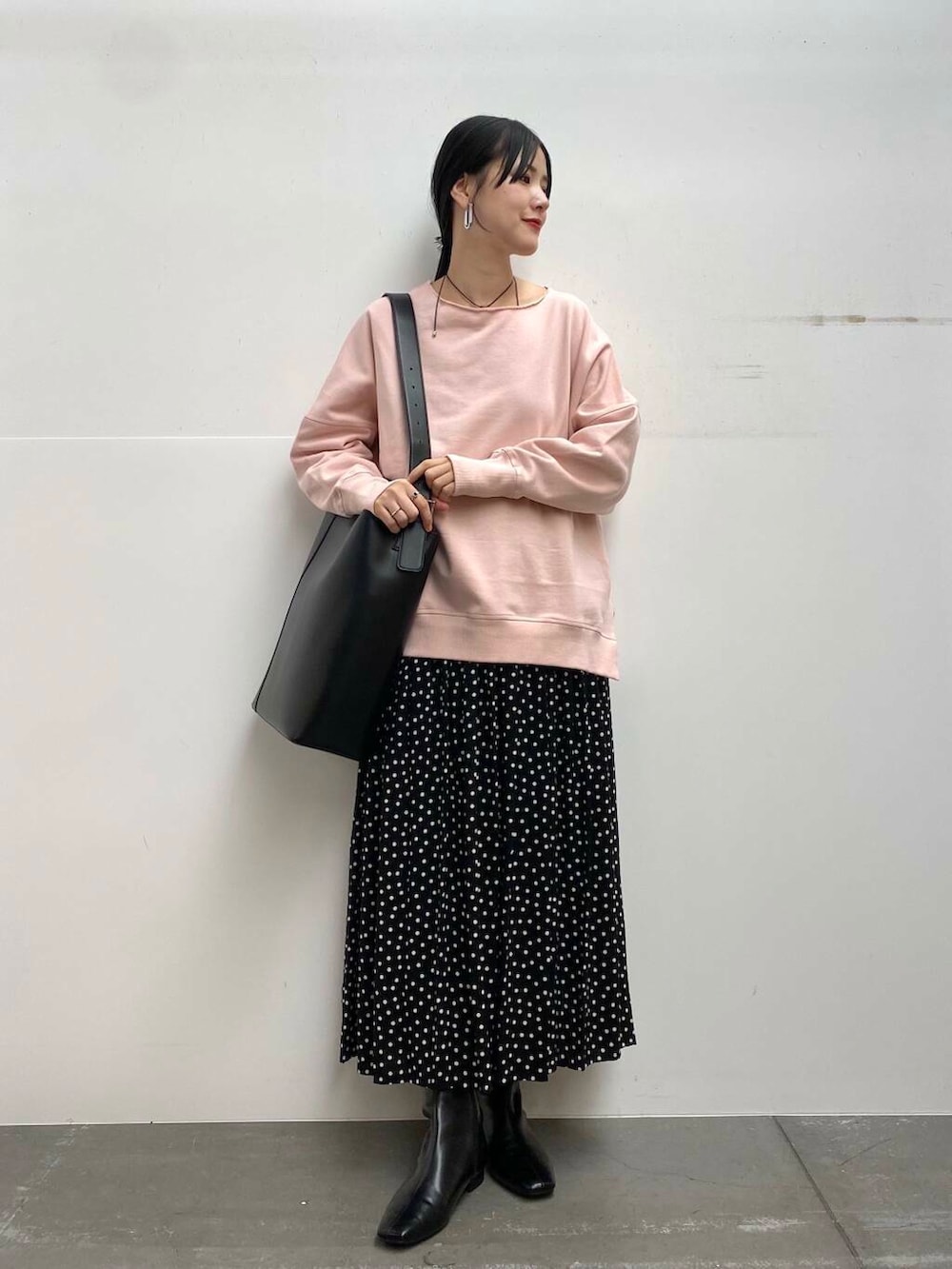 スウェットは抜け感のある首元のデザインが、カジュアルになりすぎずおしゃれな雰囲気に◎