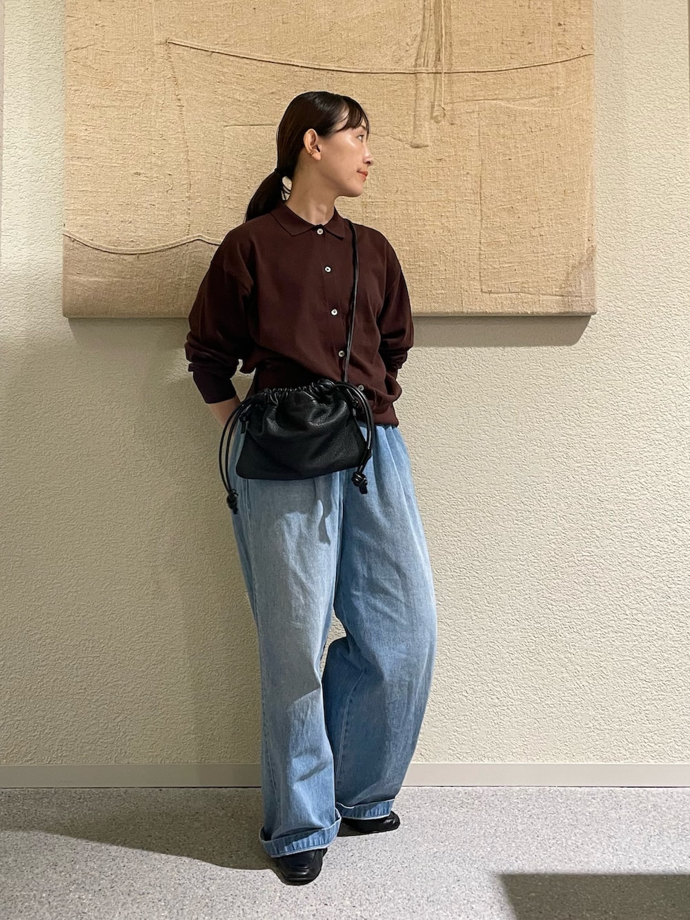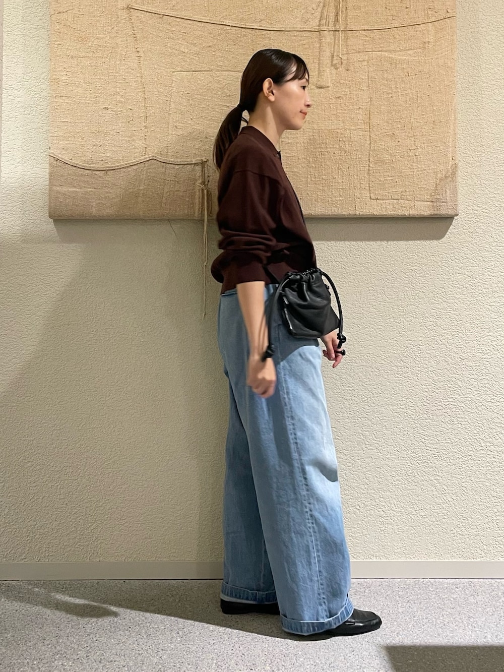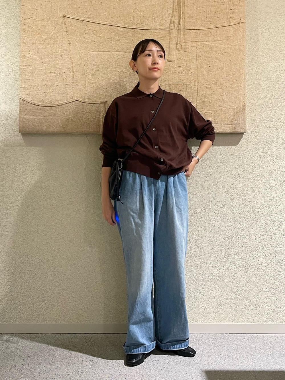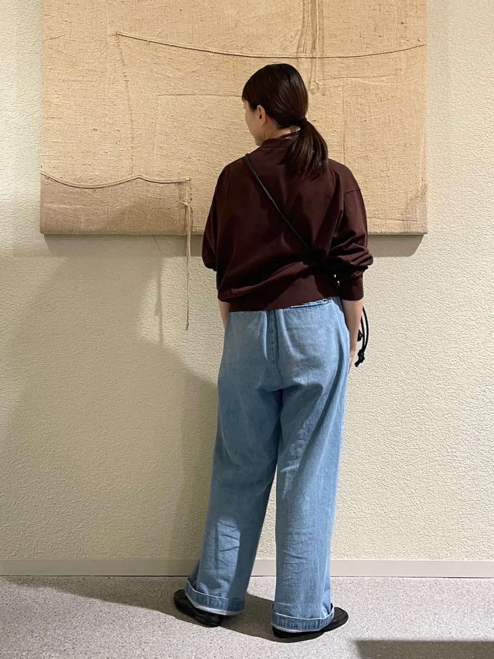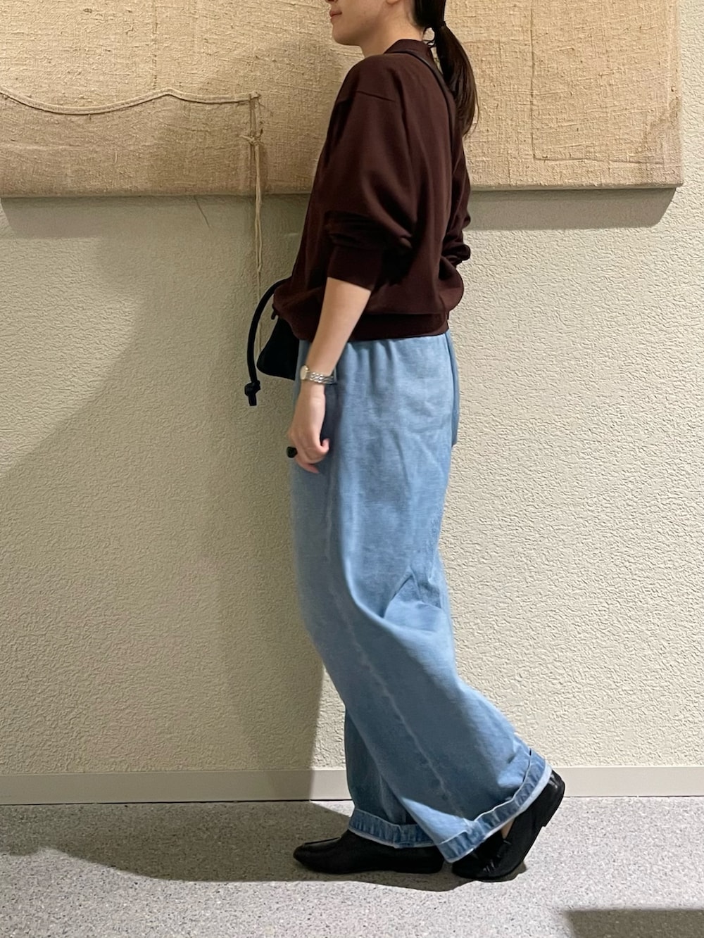 身幅が割とありゆるっとしていて着心地楽で、裾が止まってくれるのでパンツでもスカートでも合わせやすいです。