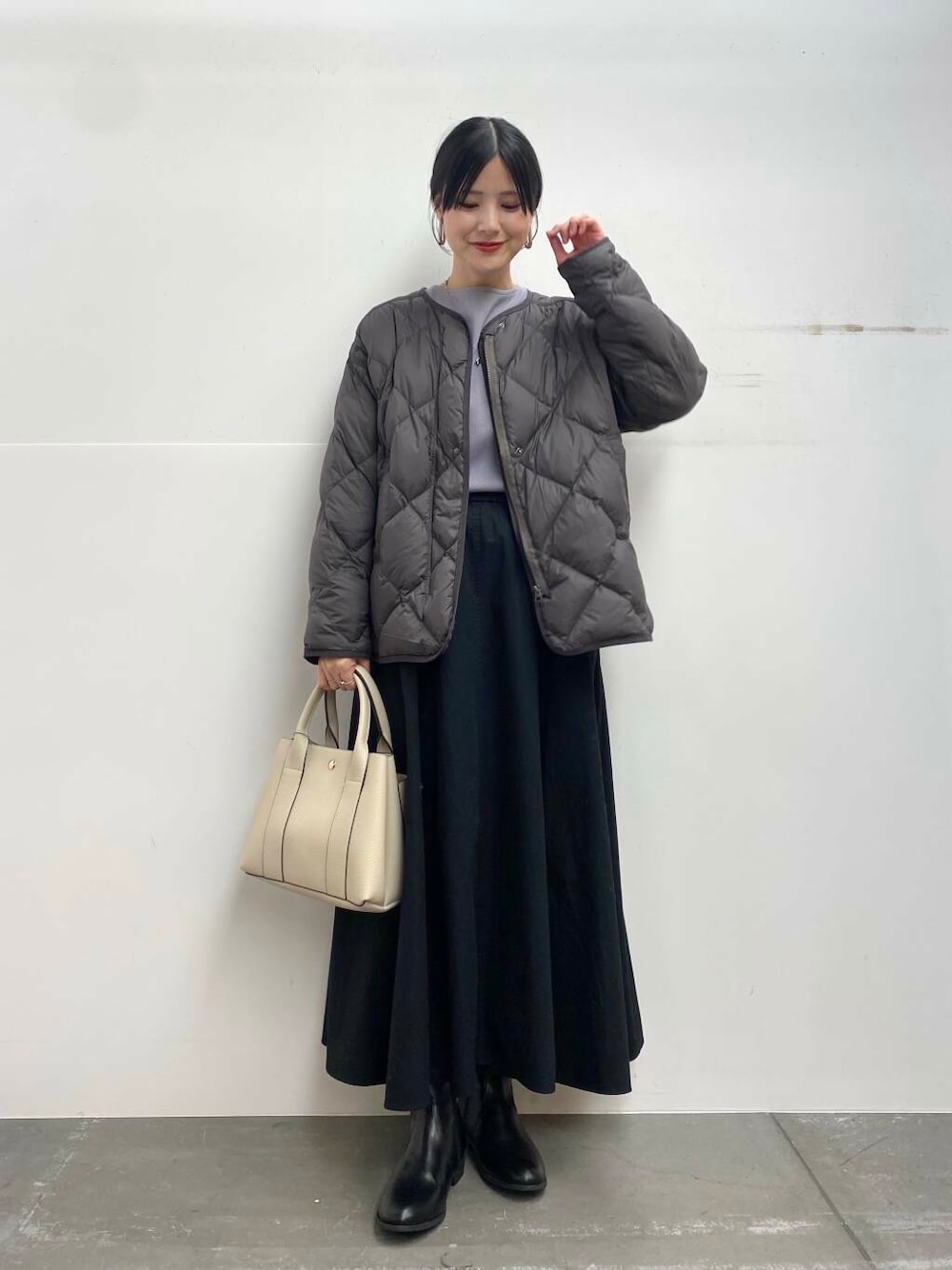 すっきりとしたショート丈なのでスカートにもパンツにも合わせやすいです!