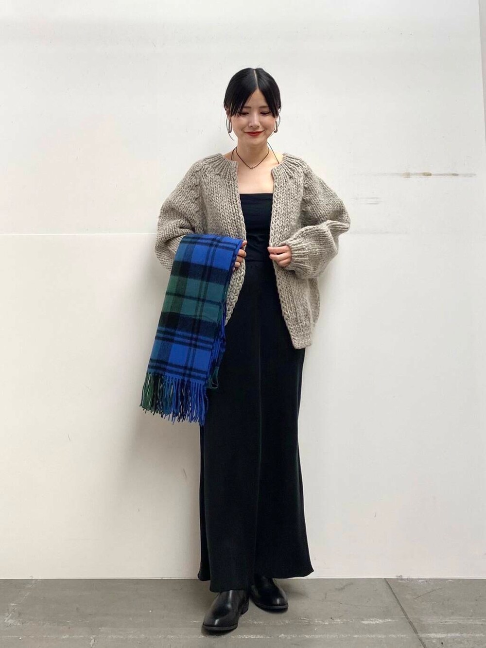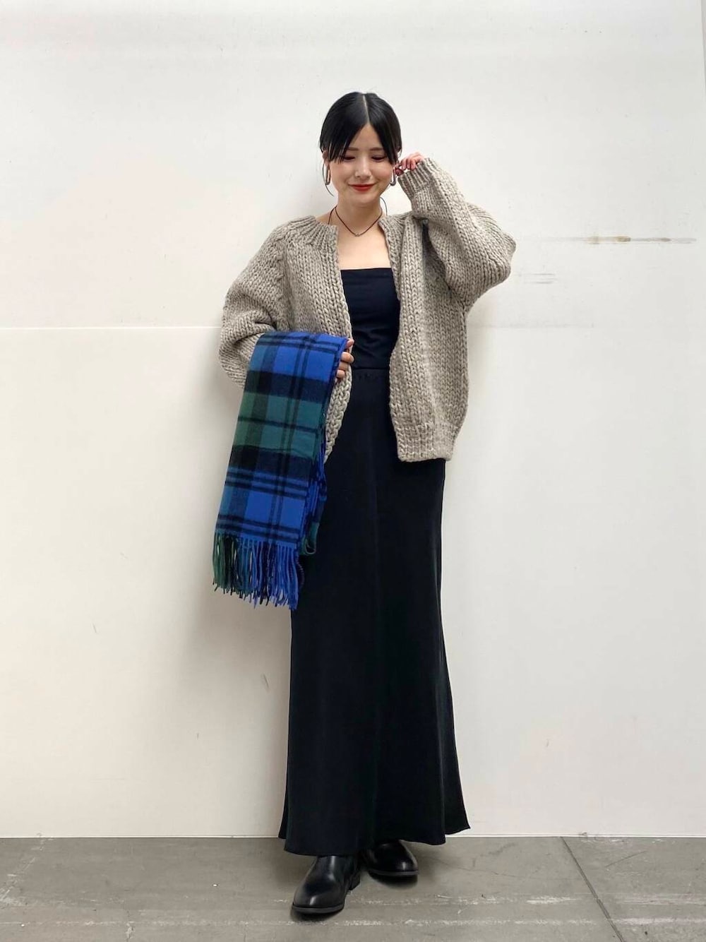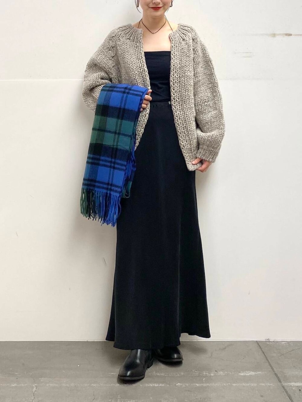 カーディガンはざっくり厚みのあるニット感がおしゃれな印象に◎