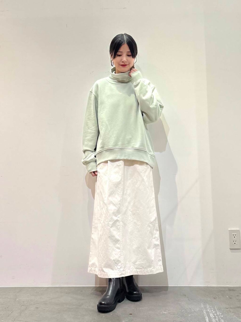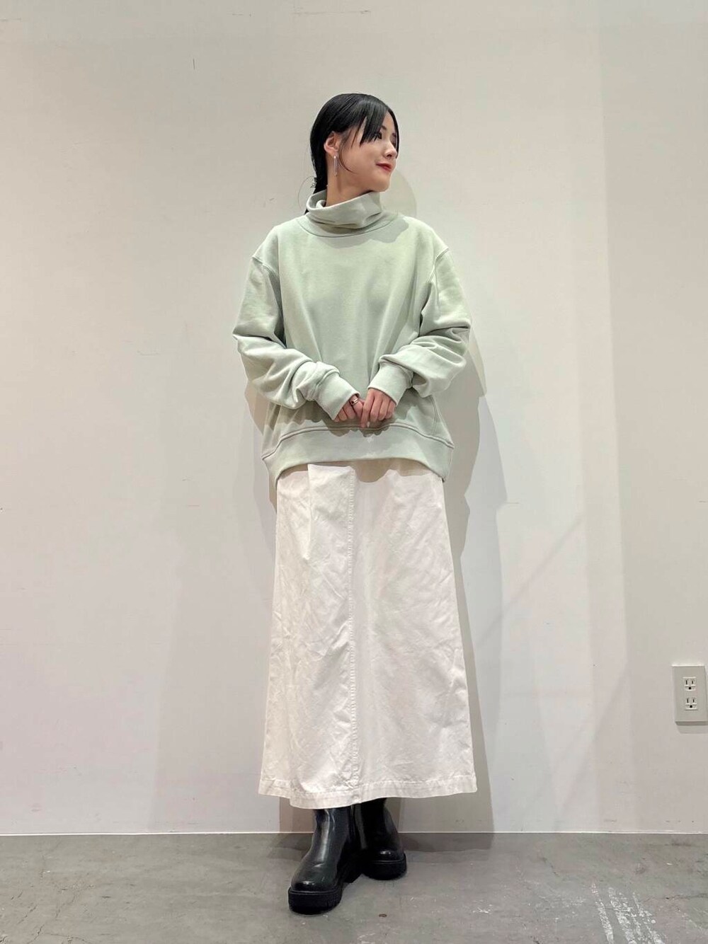 スウェットはタートルネックで蓄熱性のある素材感なのでとても温かいです◎