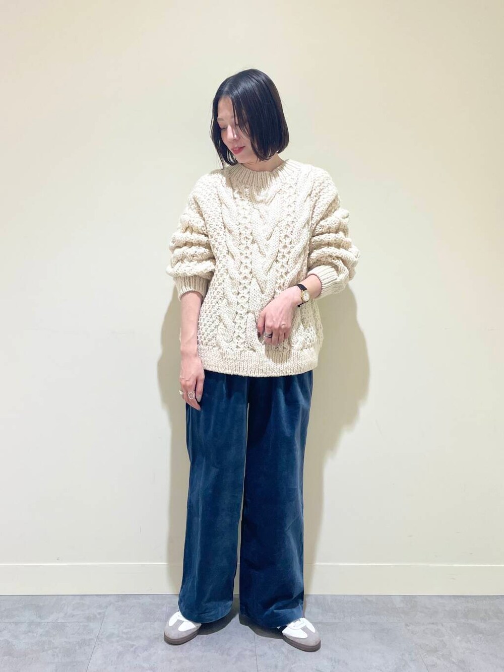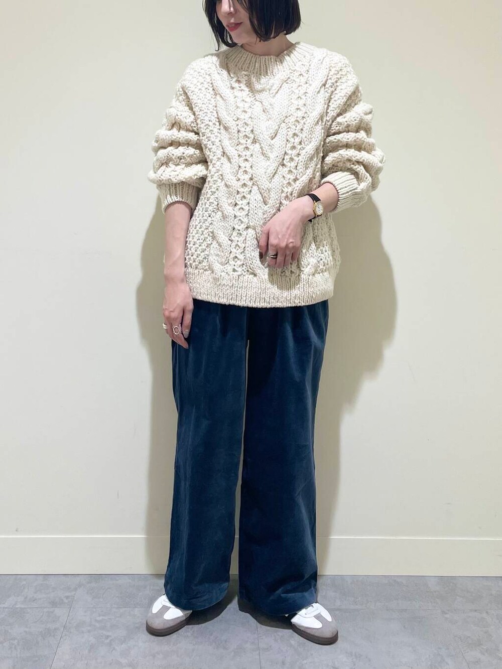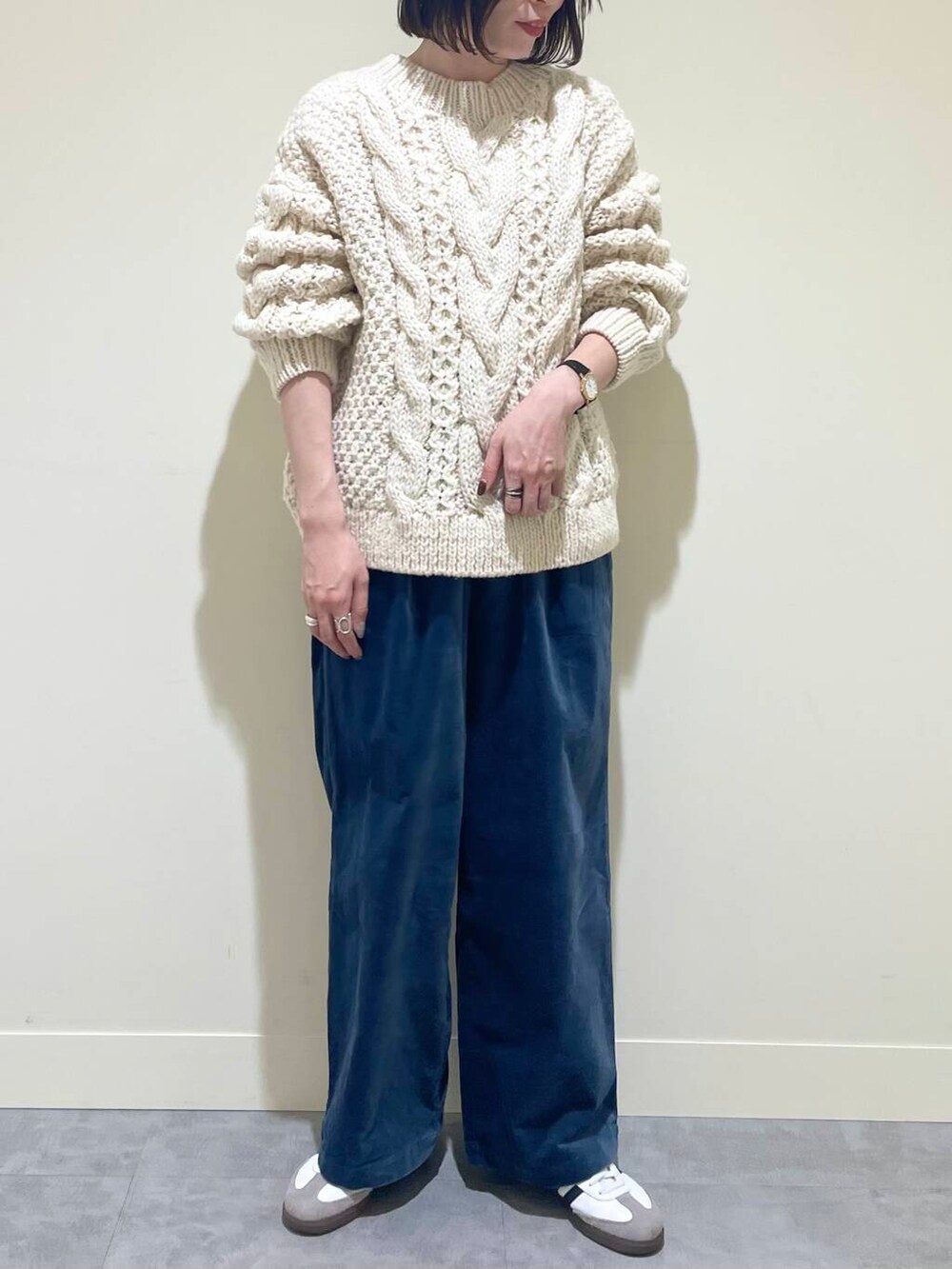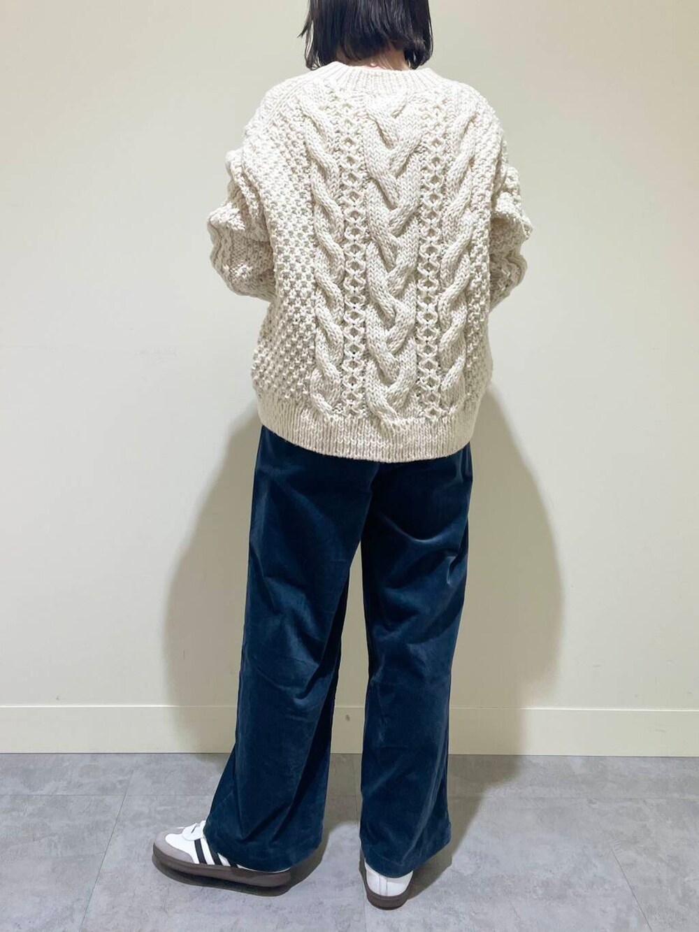 ざっくりとした編みでアラン柄が目をひくニットです。ややボリューム感はありますが、このたっぷりとしたシルエットが可愛いポイントです!見た目ほど重くなく、軽くて着やすいです◎ホリデーシーズン、プレゼントにもおすすめです!