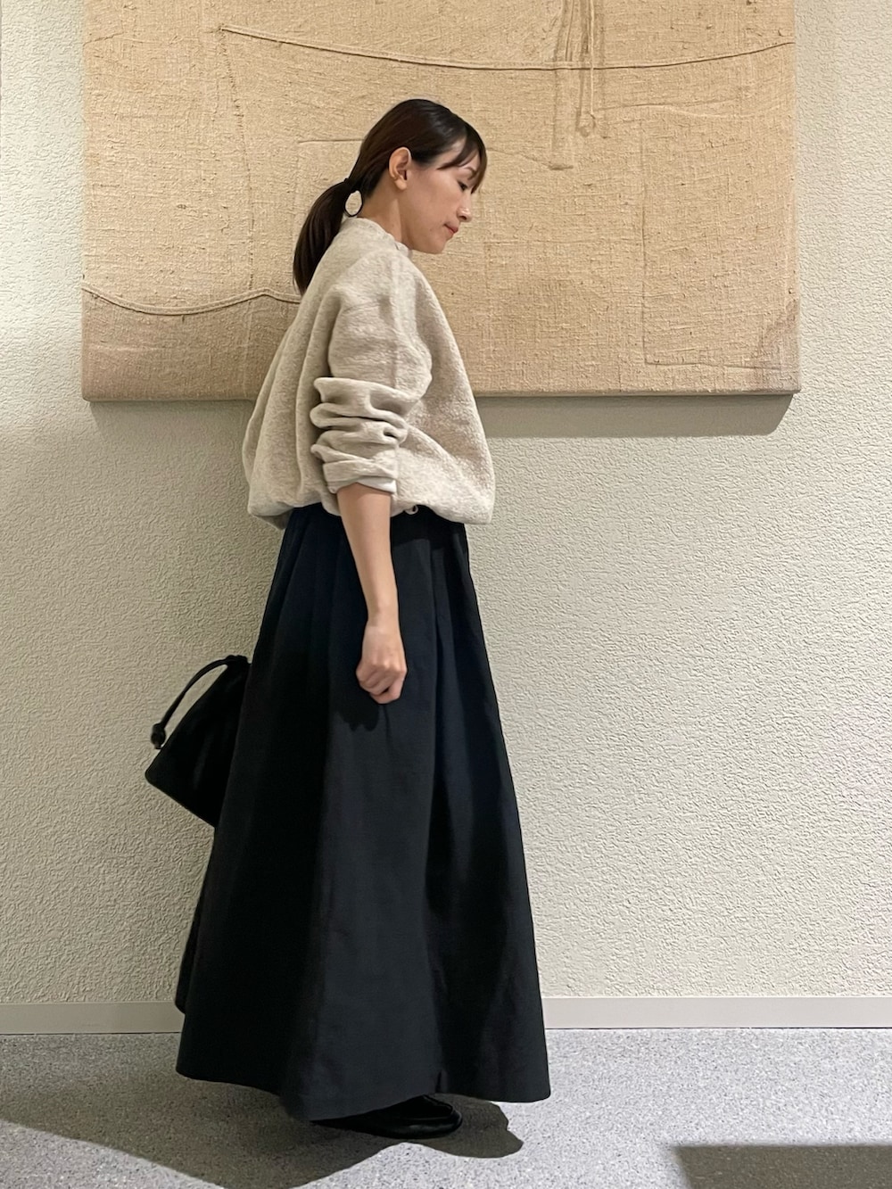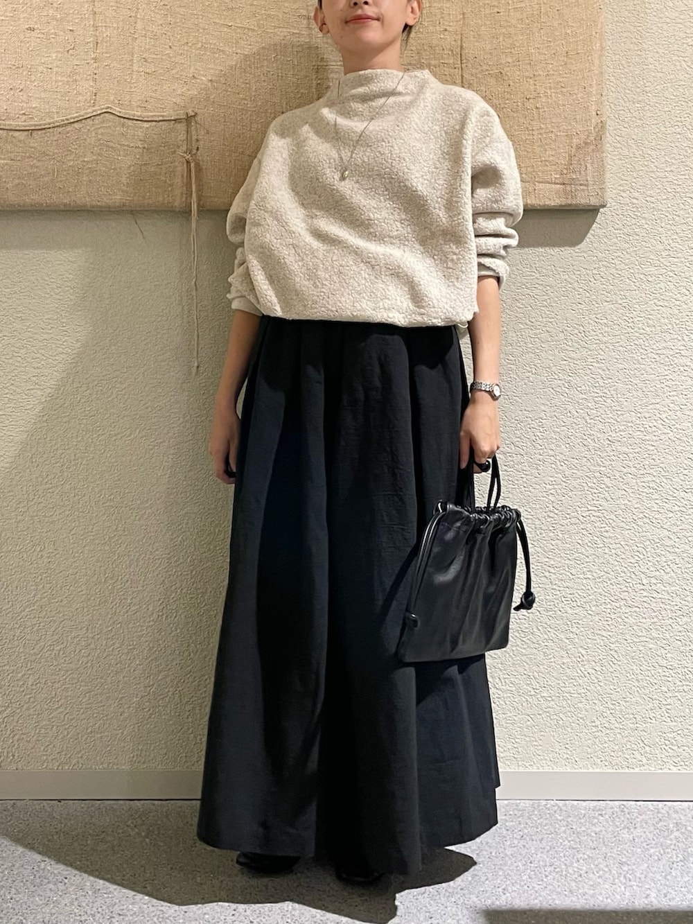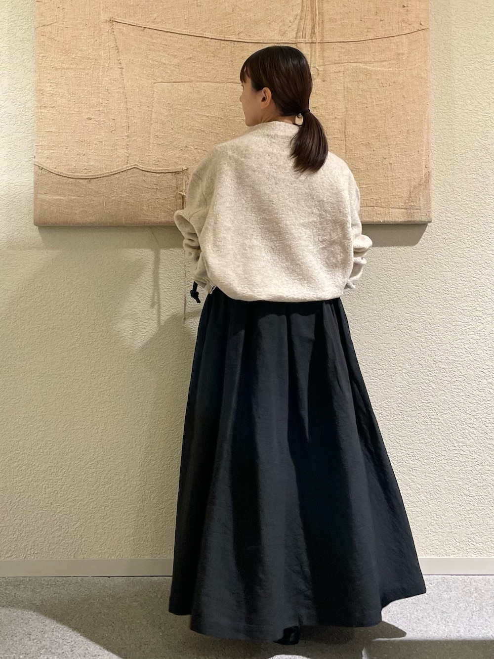 丈も長めでボリュームもあって、、広がりすぎるかな、、と思いましたが、履いてみるとタックが効いていて低身長でもこなれて見えるボリュームスカートです✨