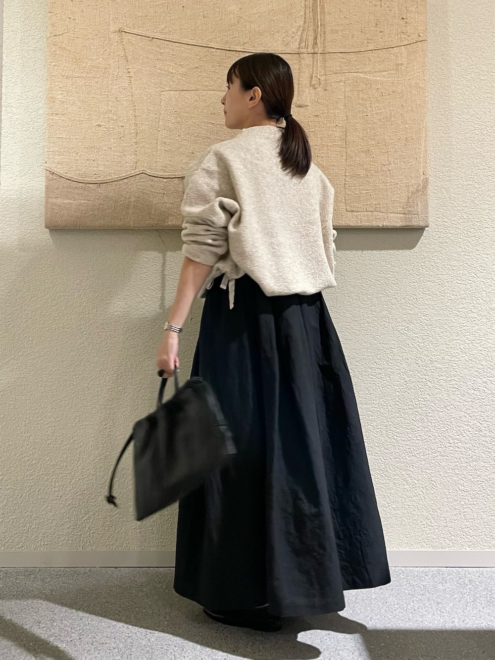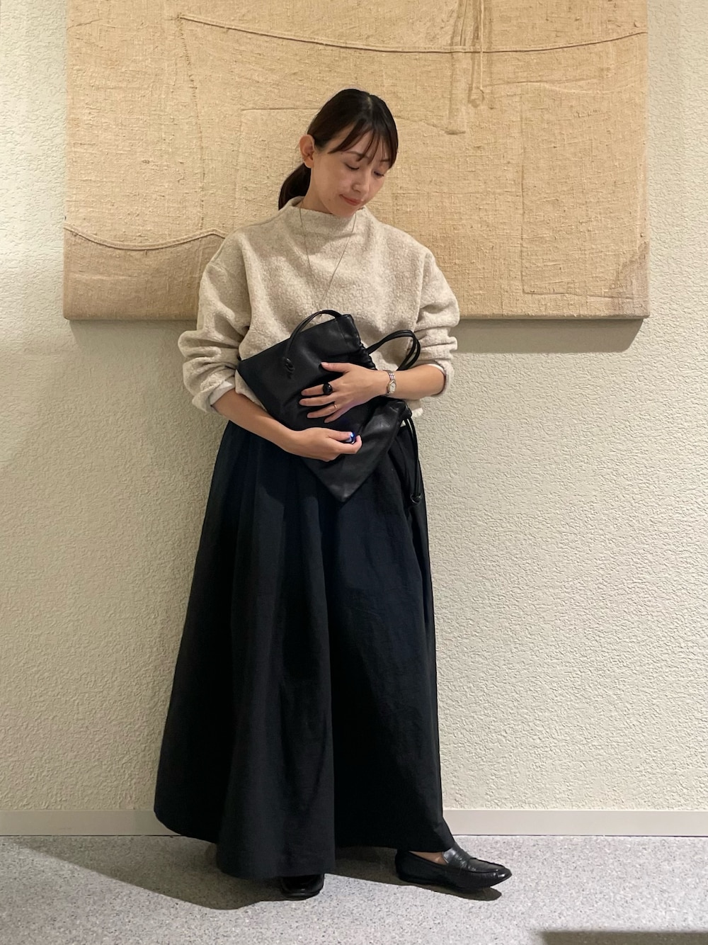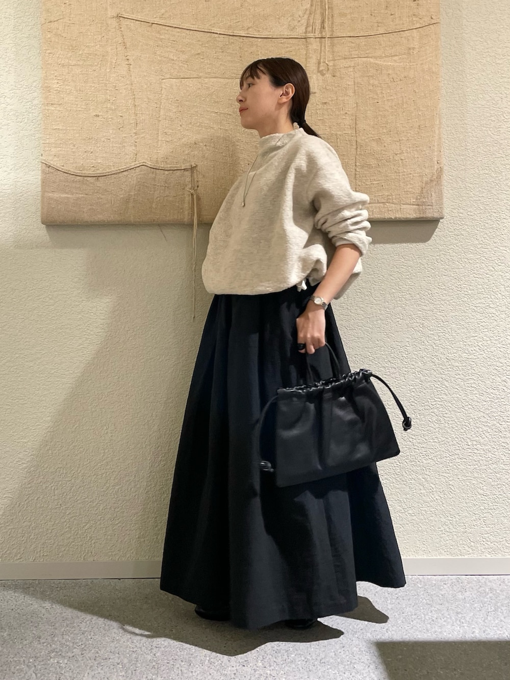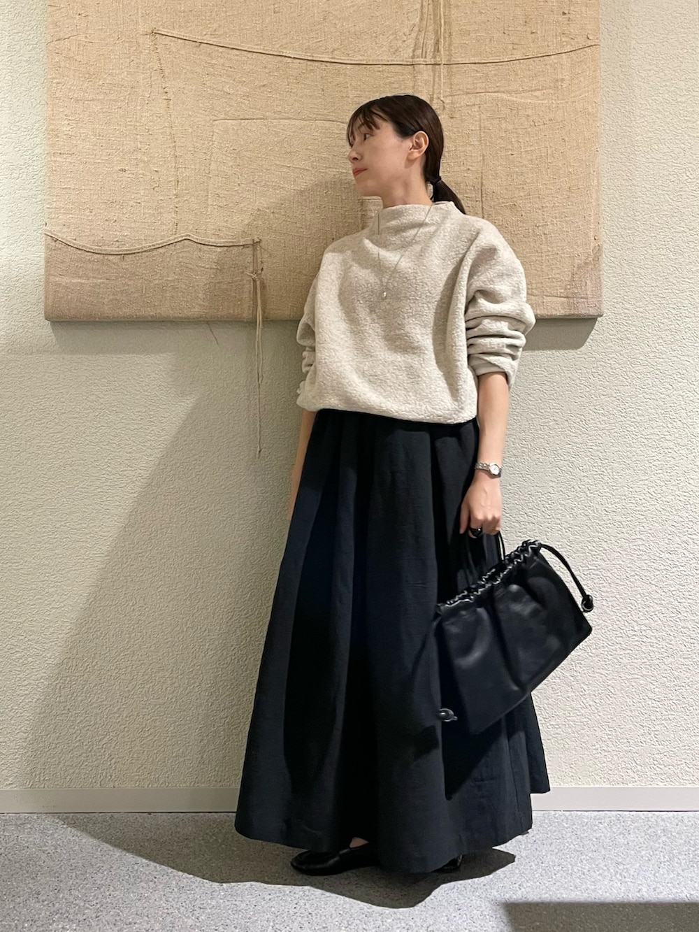 丈も長めでボリュームもあって、、広がりすぎるかな、、と思いましたが、履いてみるとタックが効いていて低身長でもこなれて見えるボリュームスカートです✨