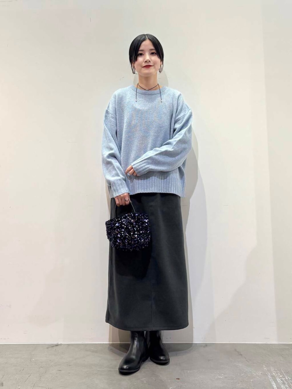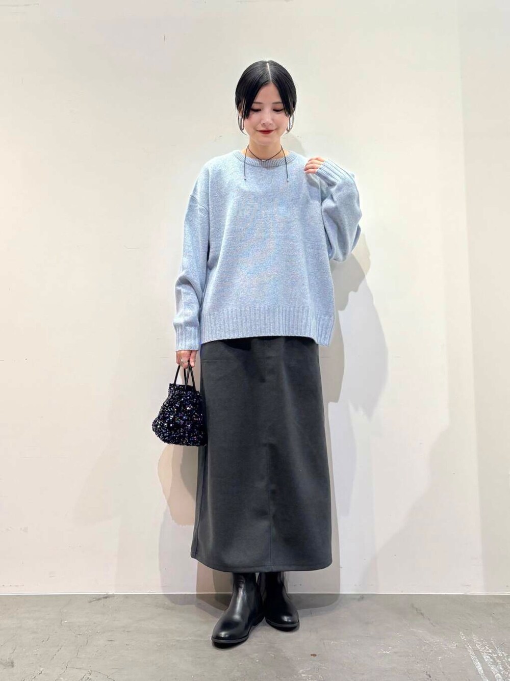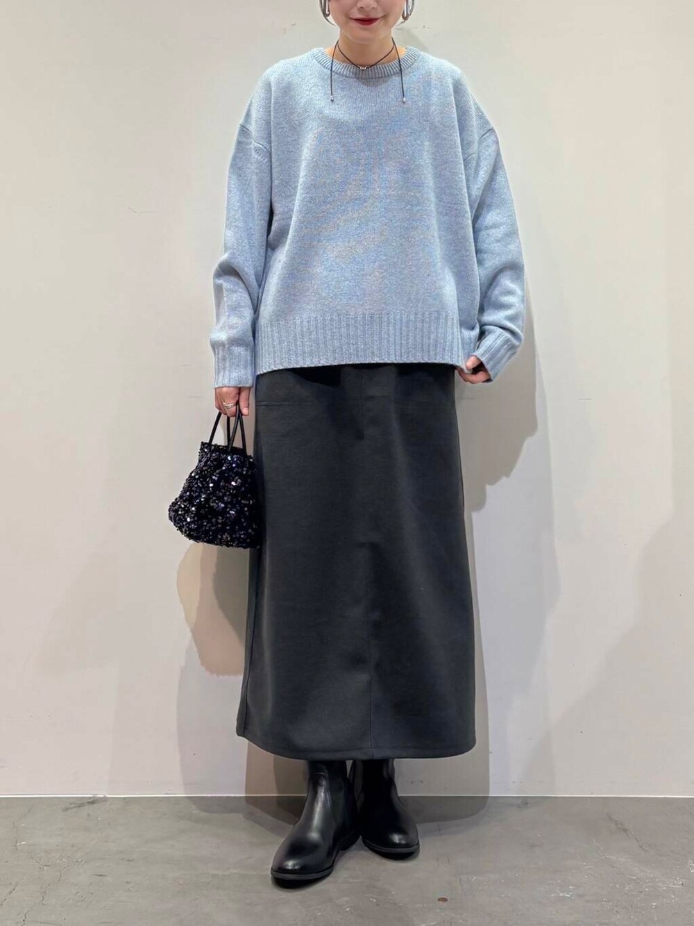 ニットはあわいブルーのカラーがかわいいです◎