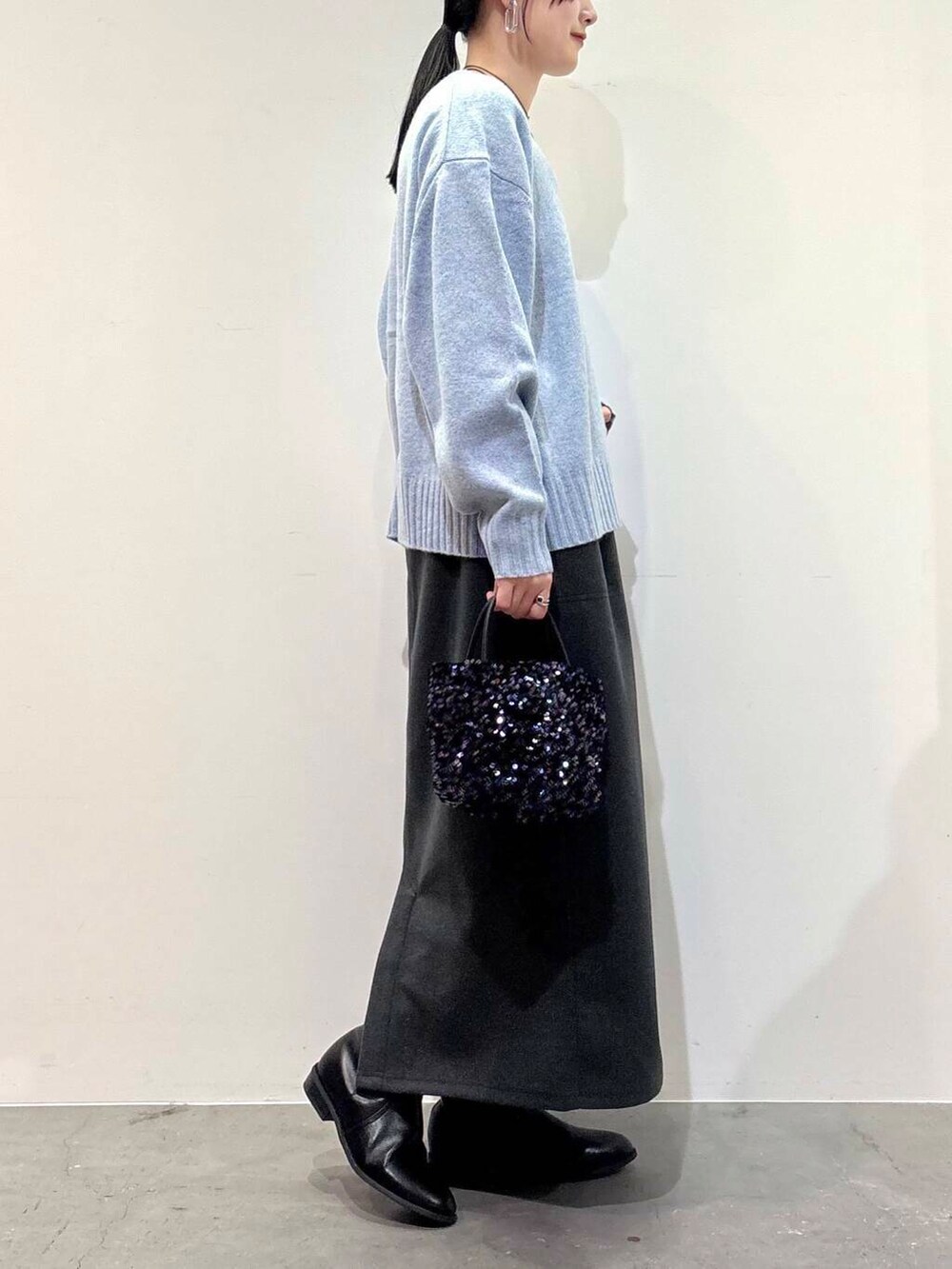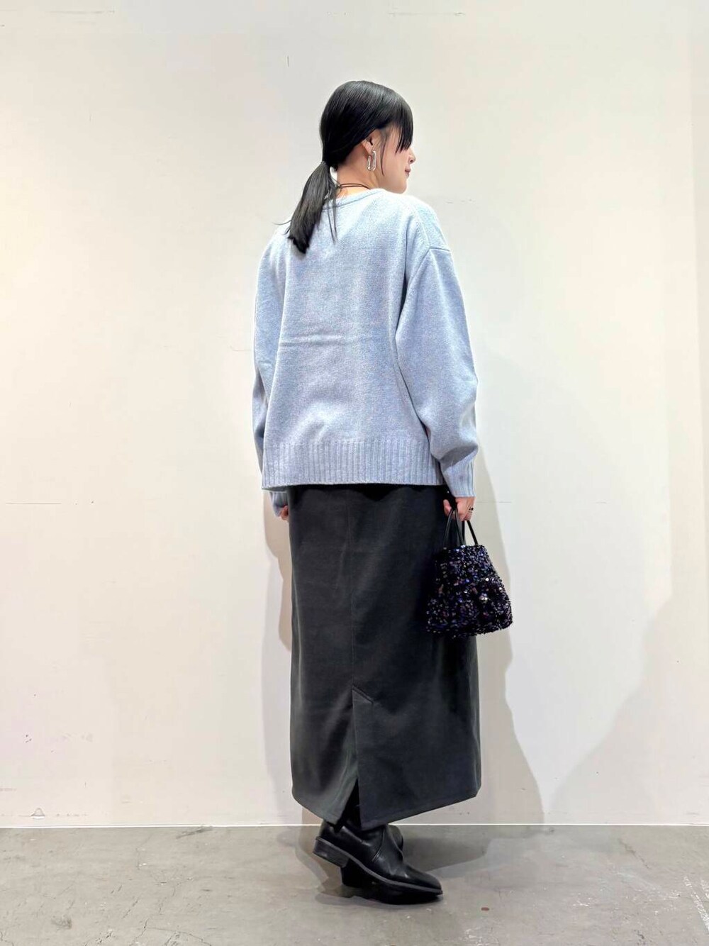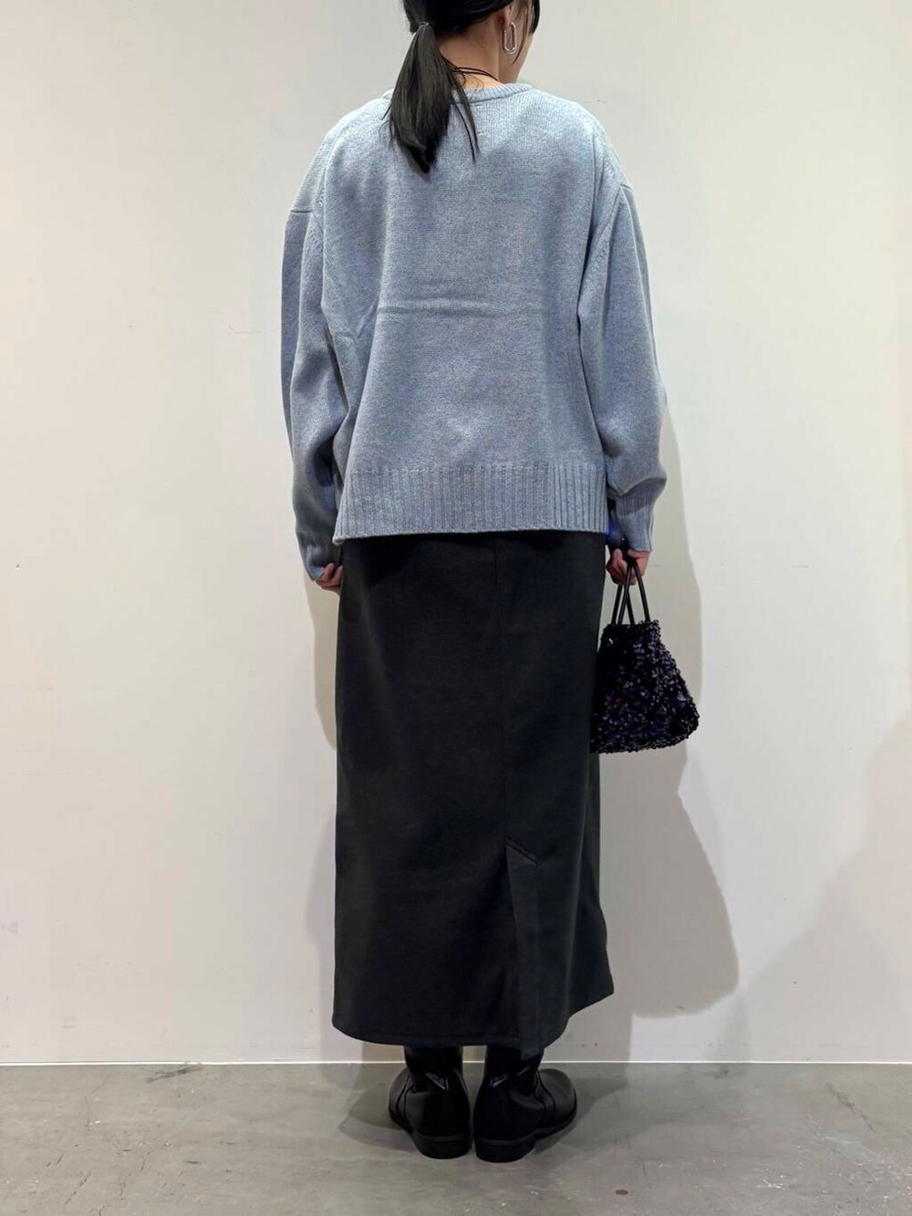 ニットはあわいブルーのカラーがかわいいです◎
