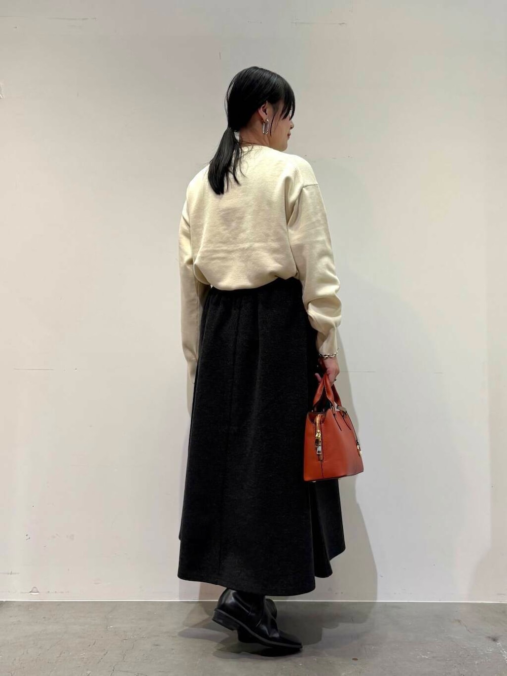 ウエストゴムなのにごわつかずすっきりとしたフレアのラインです♩