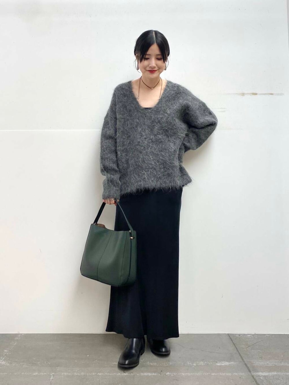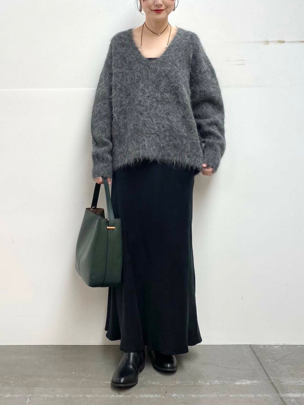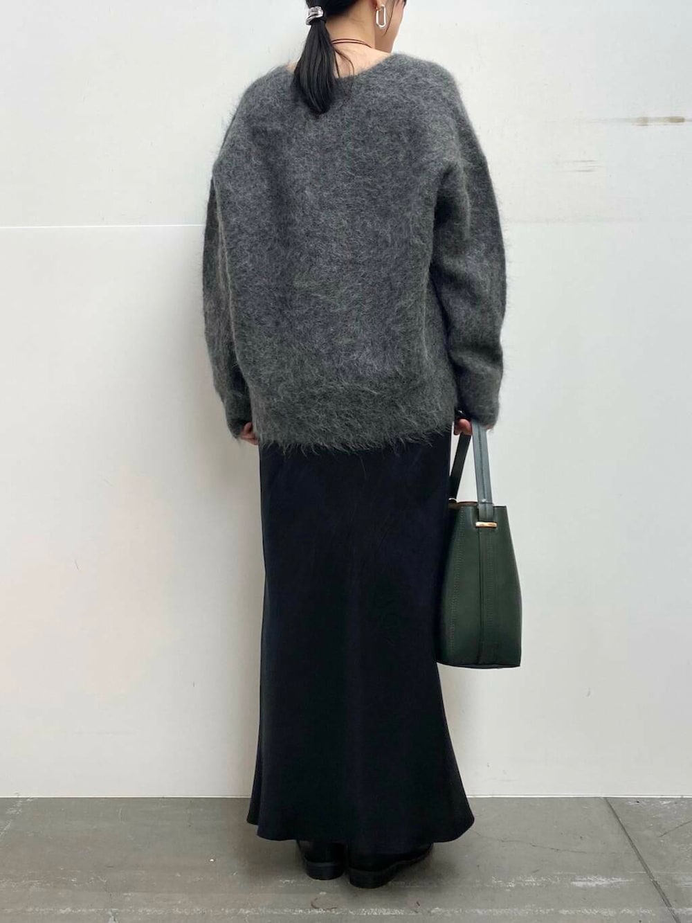 ニットは毛足が長めで女性らしい大人な印象に♩