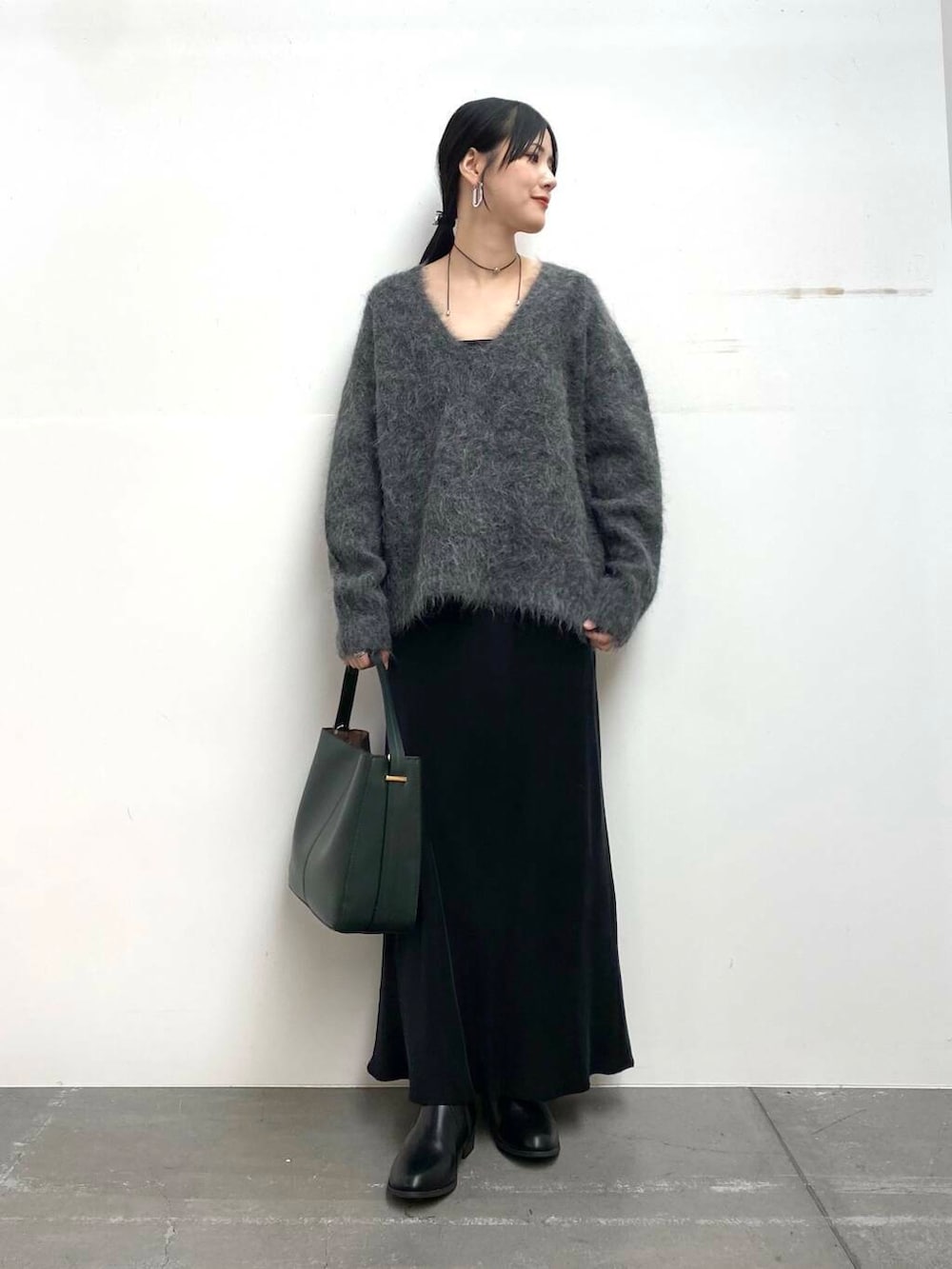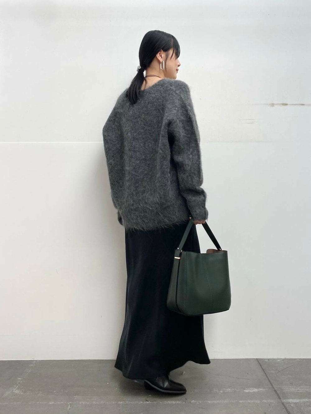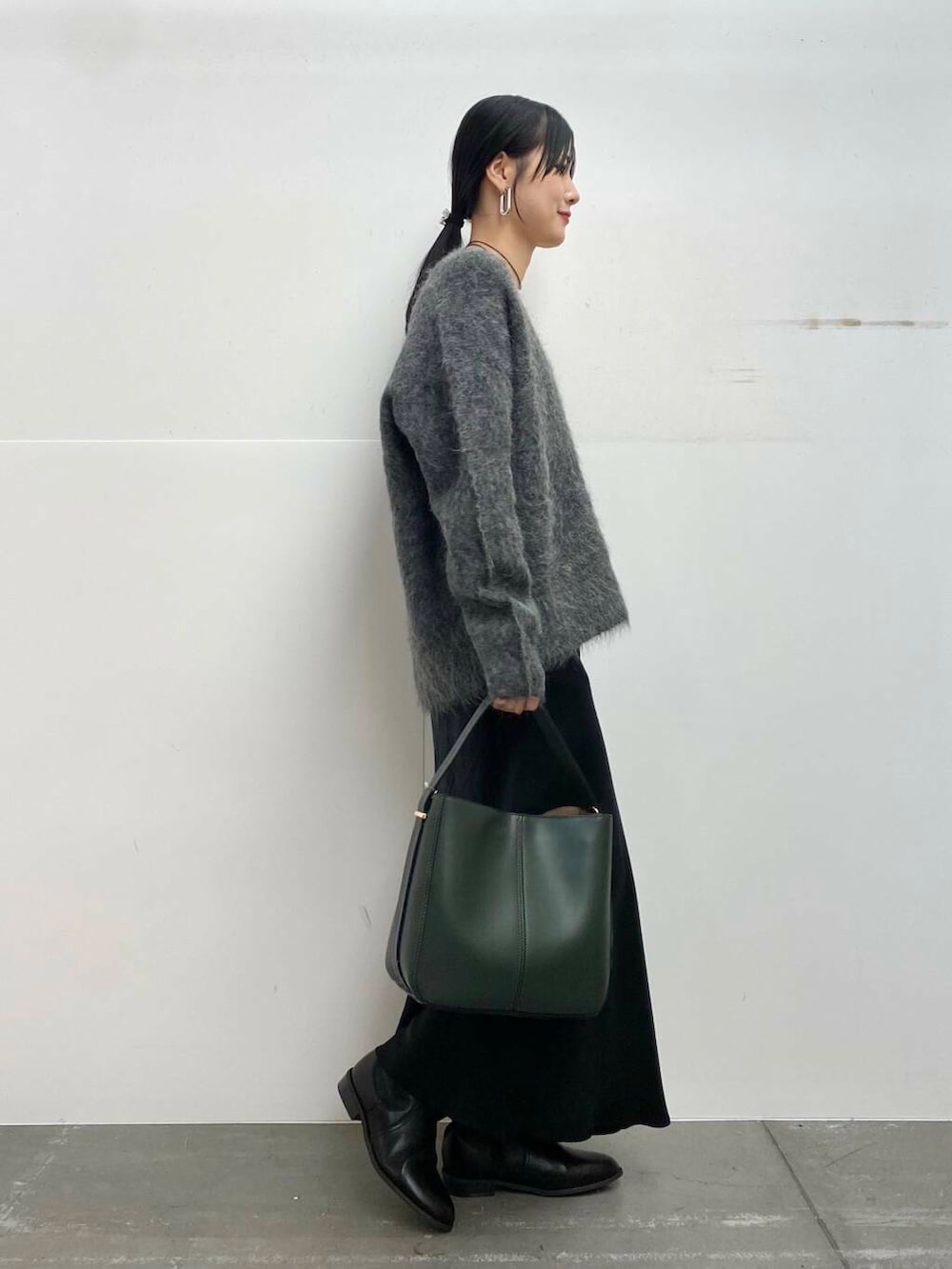 ニットは毛足が長めで女性らしい大人な印象に♩