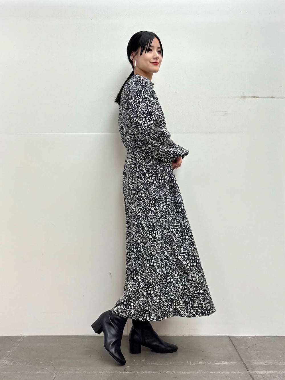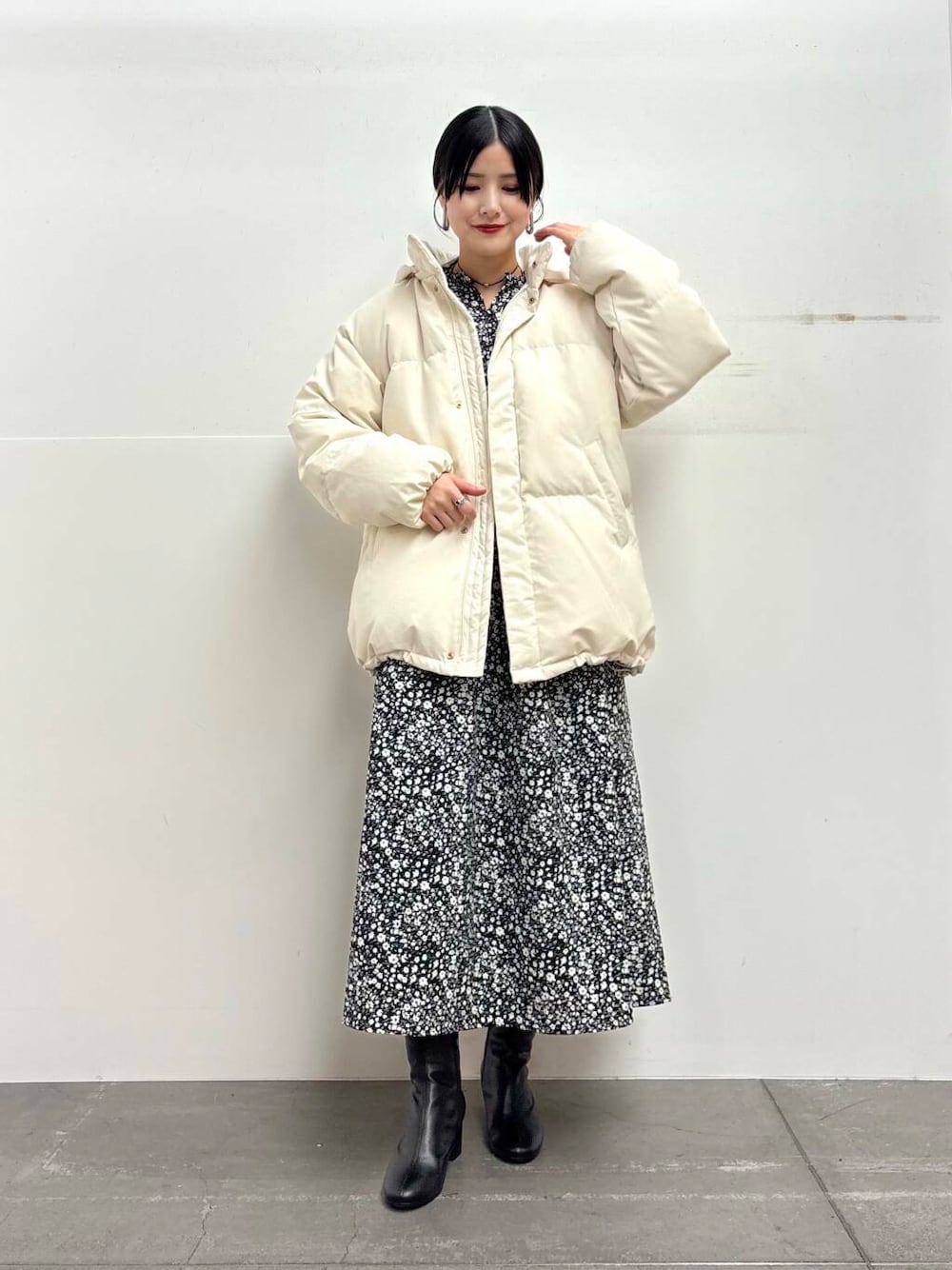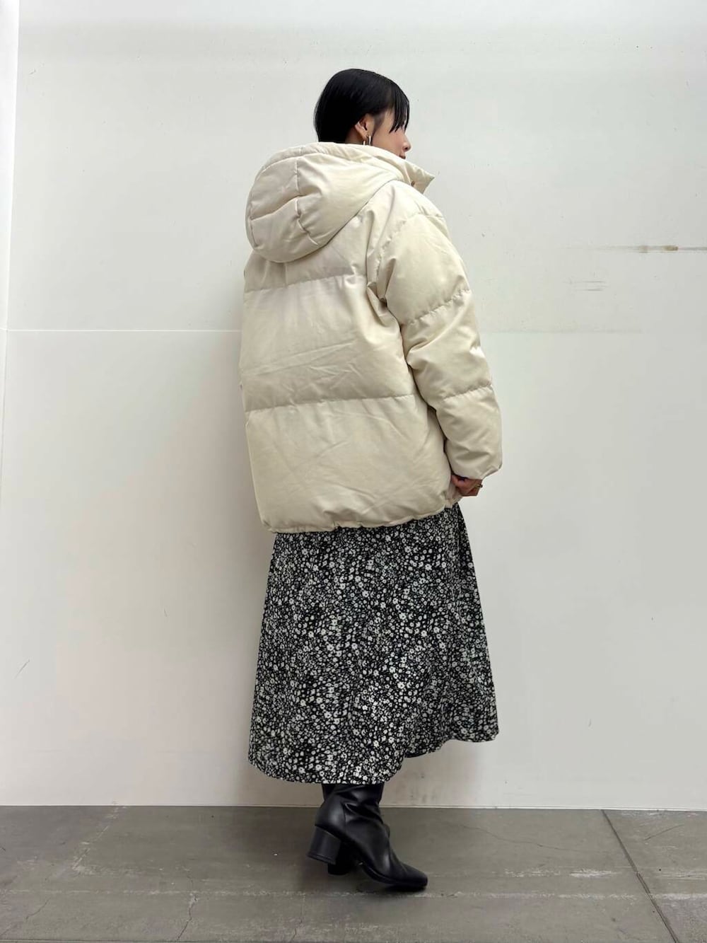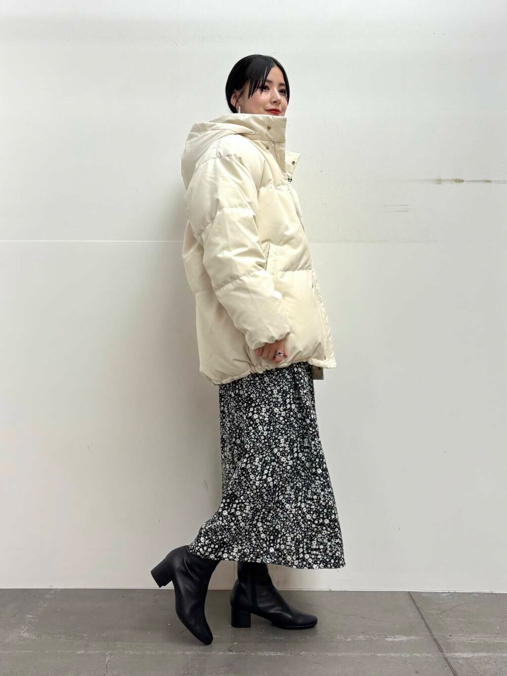 ゆったりと大きめなシルエットですが、裾を絞れるので気になる方は裾を絞ってお召しいただけます♩