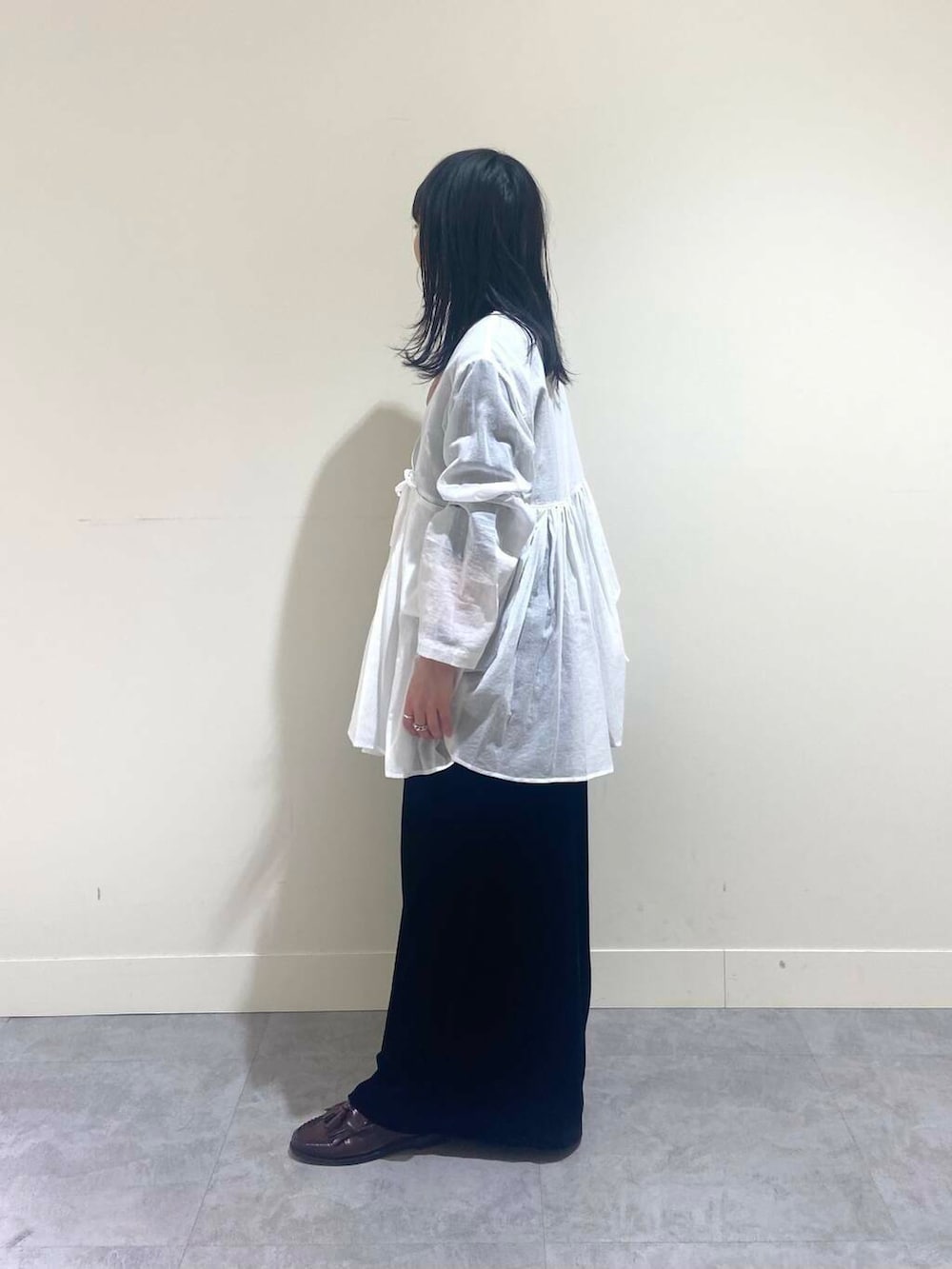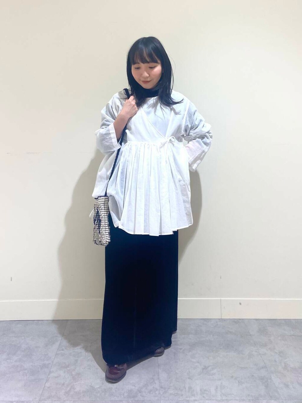 ブラウスはわりとお袖がコンパクトで、わたしの身長でも折ったりせずそのまま着ることができました!