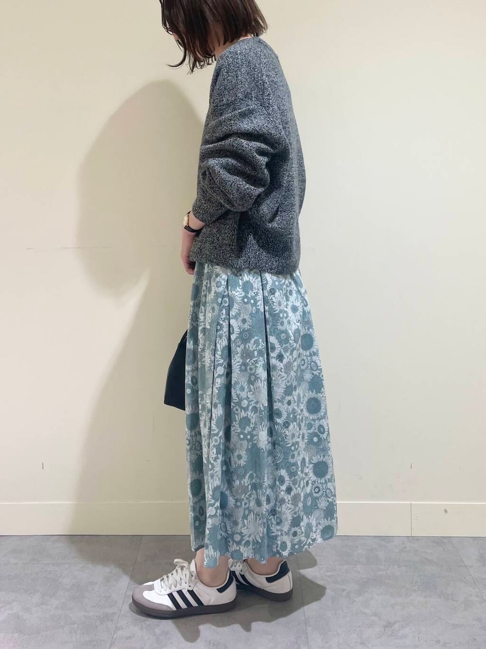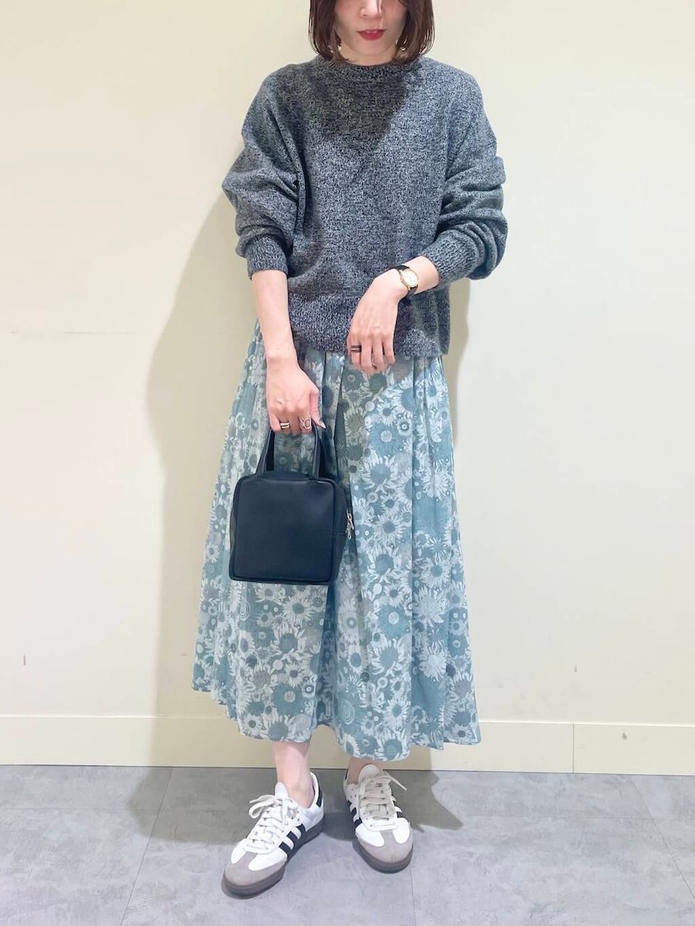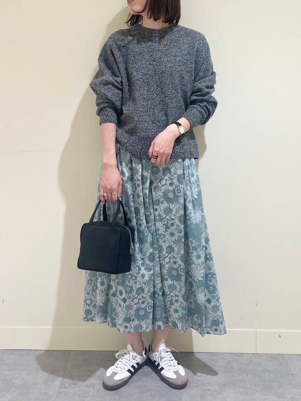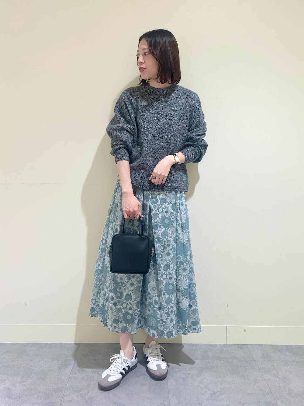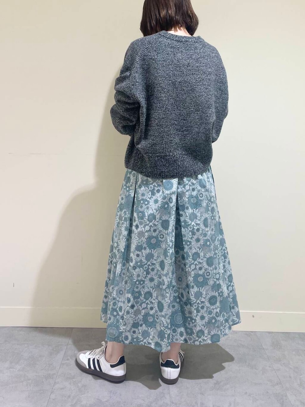 コットン素材のスカートでオールシーズン着用頂けます。今の時期だとざっくりしたニット合わせ、春先はブラウスやカットソーなど軽めの素材感のものと合わせるのが可愛くてオススメです!1枚で映えるスカートなのでトップスはシンプルなものを持ってくるのがバランス良いです◎ウエストはゴムなのでストレスフリーです。
