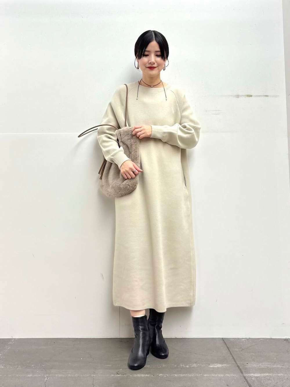 ワンピースはスウェットライクなしっかりとした素材感です◎