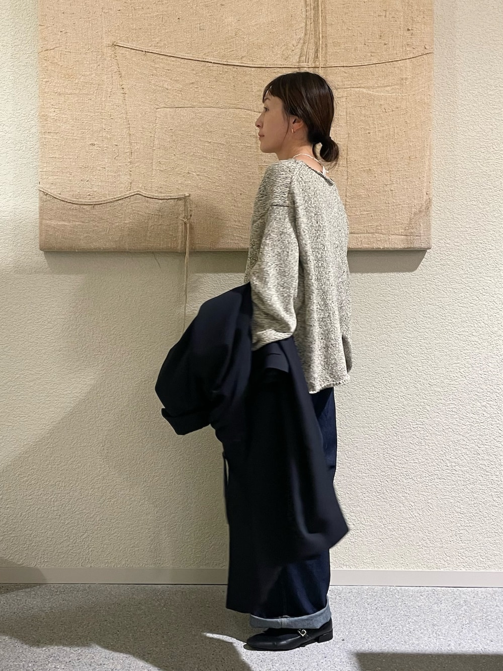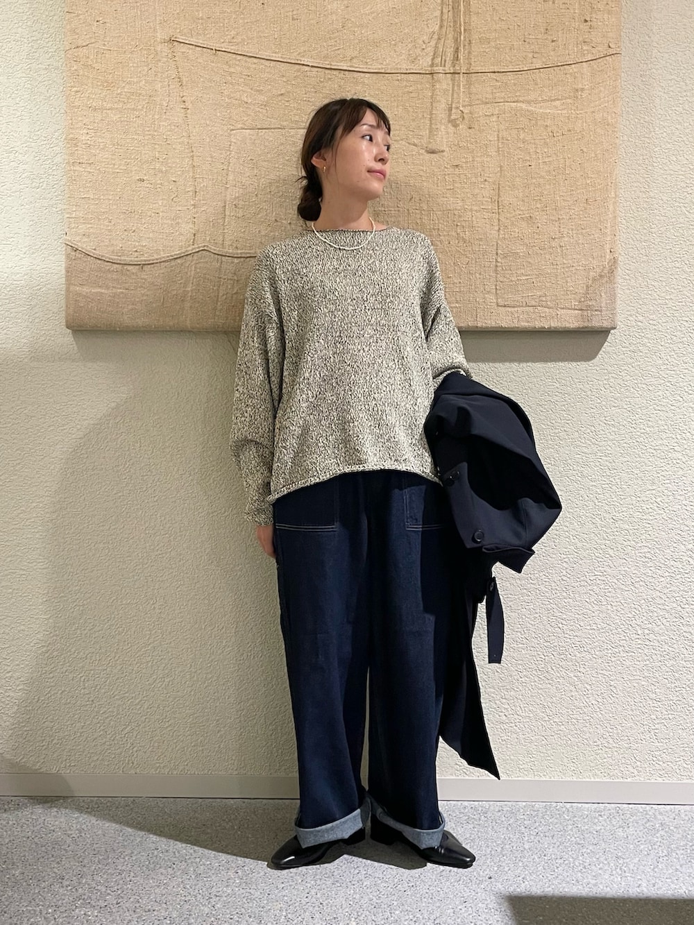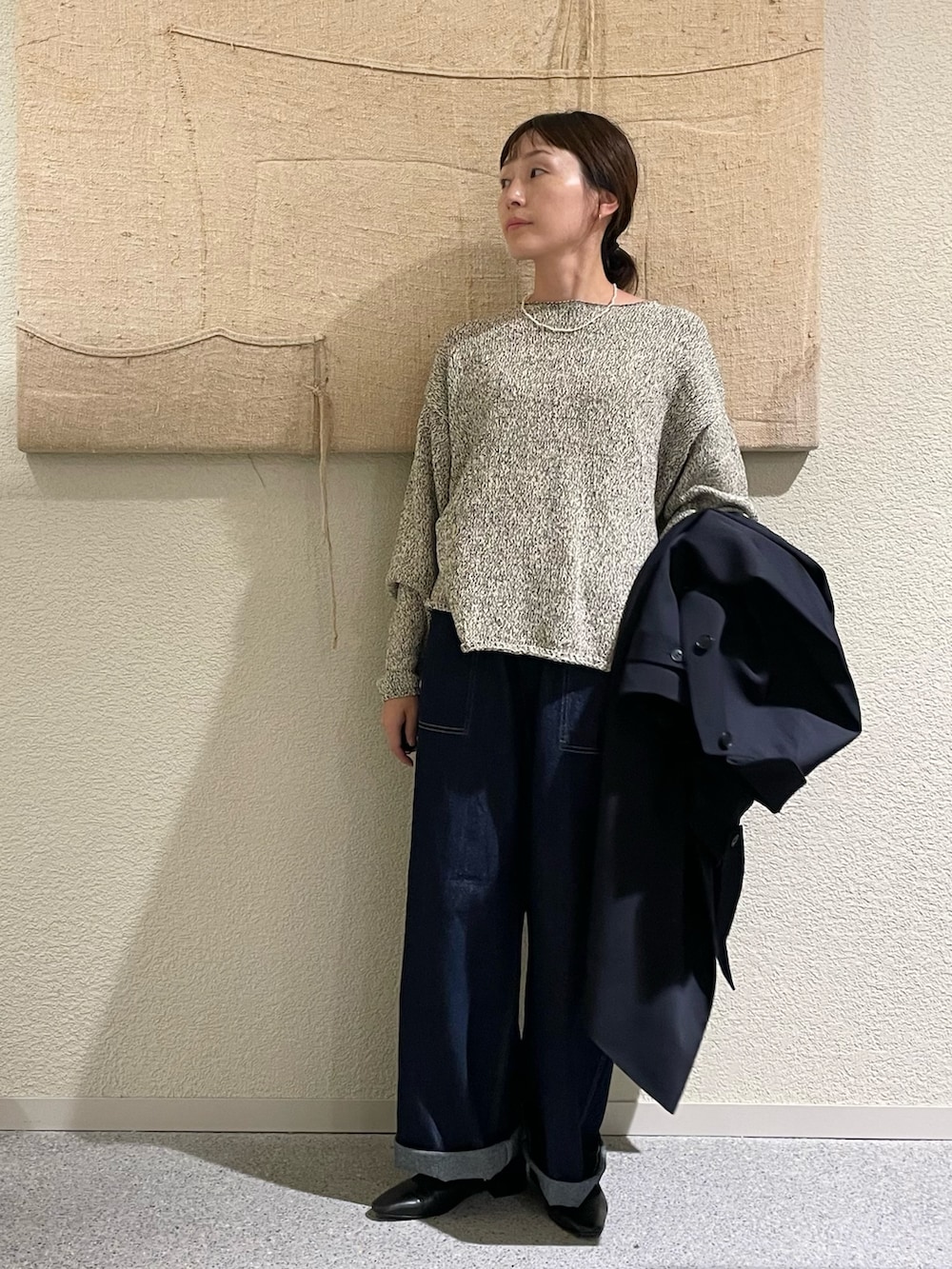 新作テープヤーンボートネックニット、L/BEIGEがミックス感のある生地がとっても可愛いです🩷