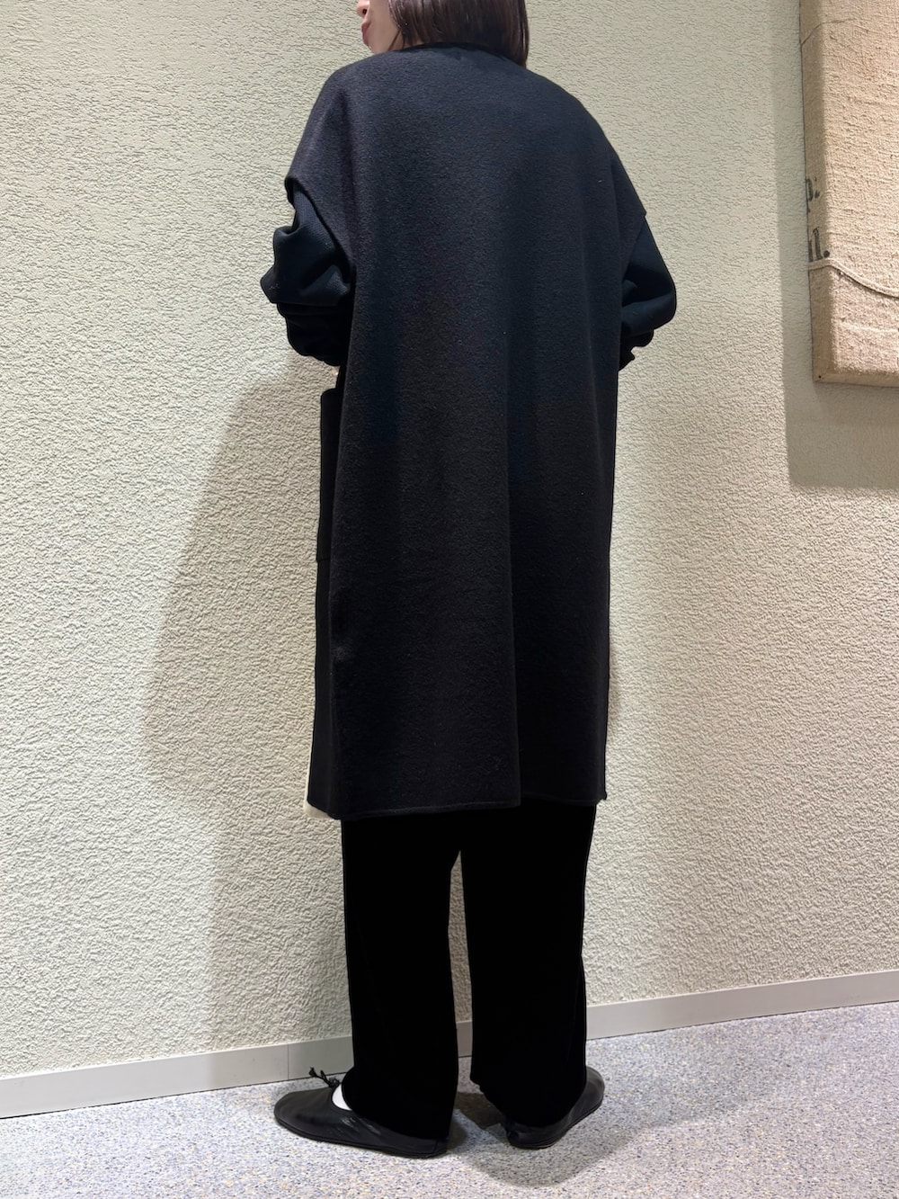 季節の変わり目に使いやすいウール素材のロングジレです。今から春先まで長いシーズン着用頂けます。