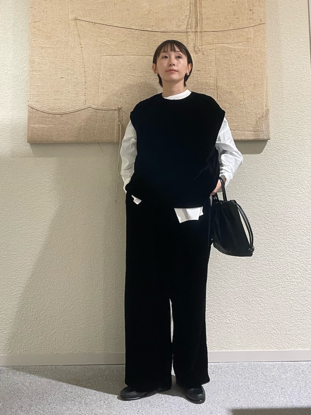 レーヨンシルクベルベットプルオーバーとレーヨンシルクベルベットパンツ、店頭でもこの肌触りが気持ち良すぎるベルベット生地の虜になってくださる方が多いです🥺