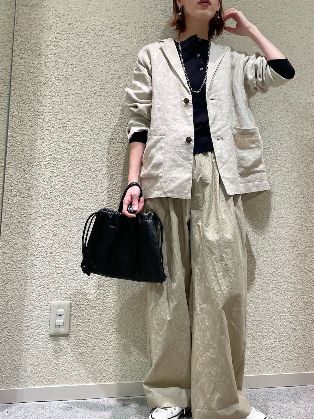 軽い着心地でカーディガン感覚で着れるジャケットで後ろを絞れるデザインになっております!