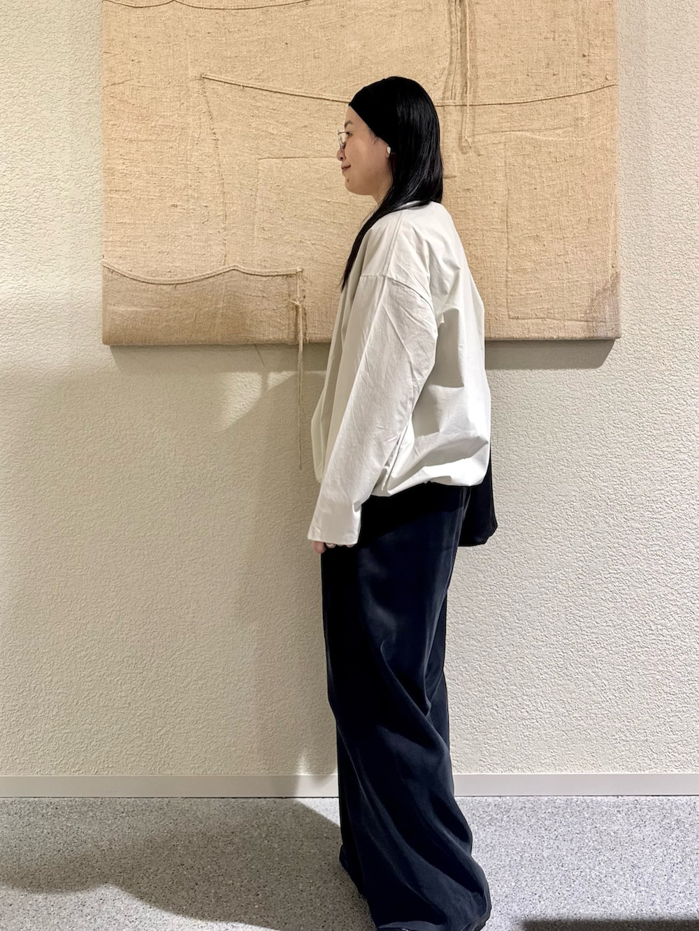 ブラウスにさらっとイージーパンツを