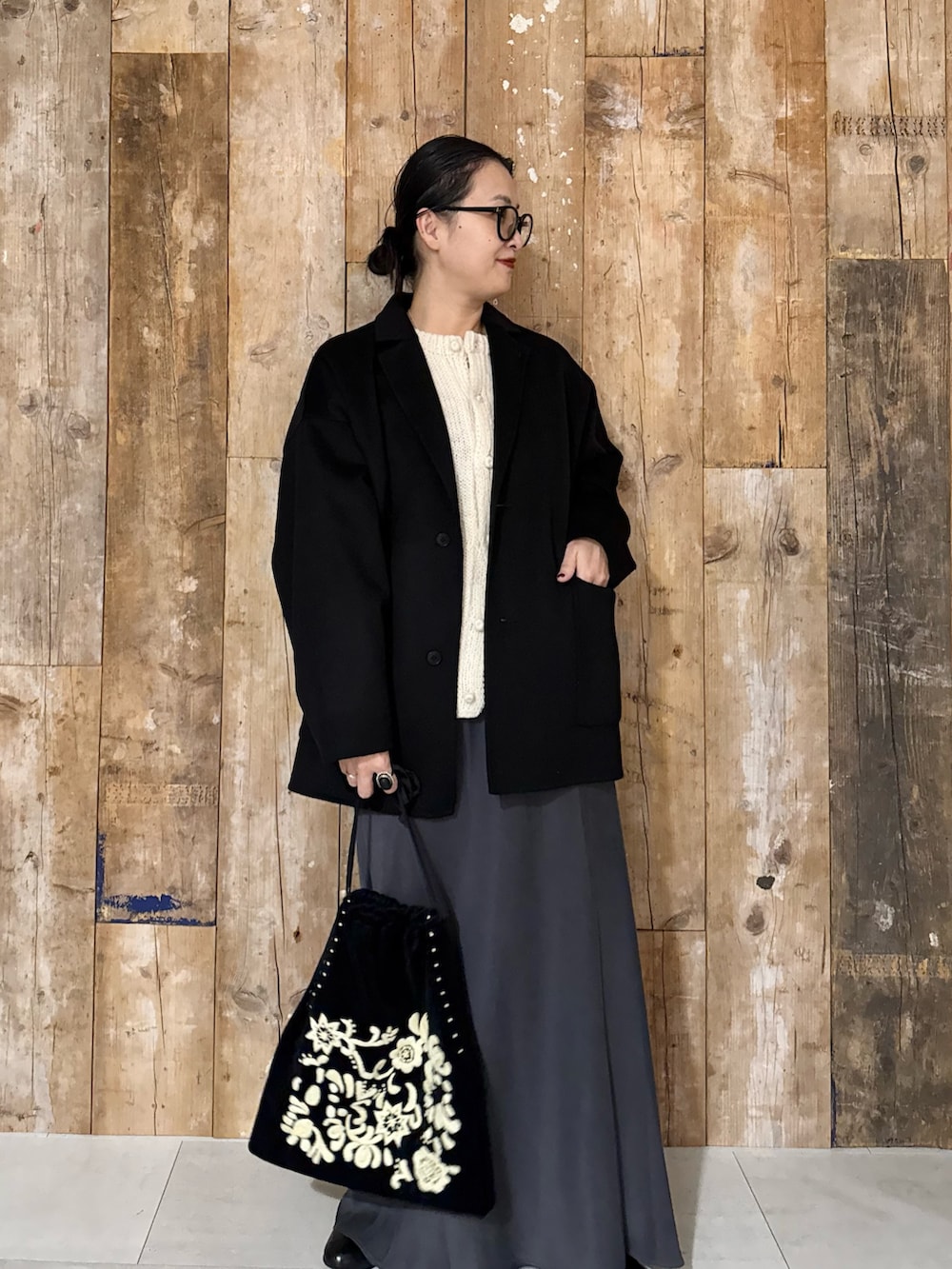 真冬はペルーニットにウールアウターで