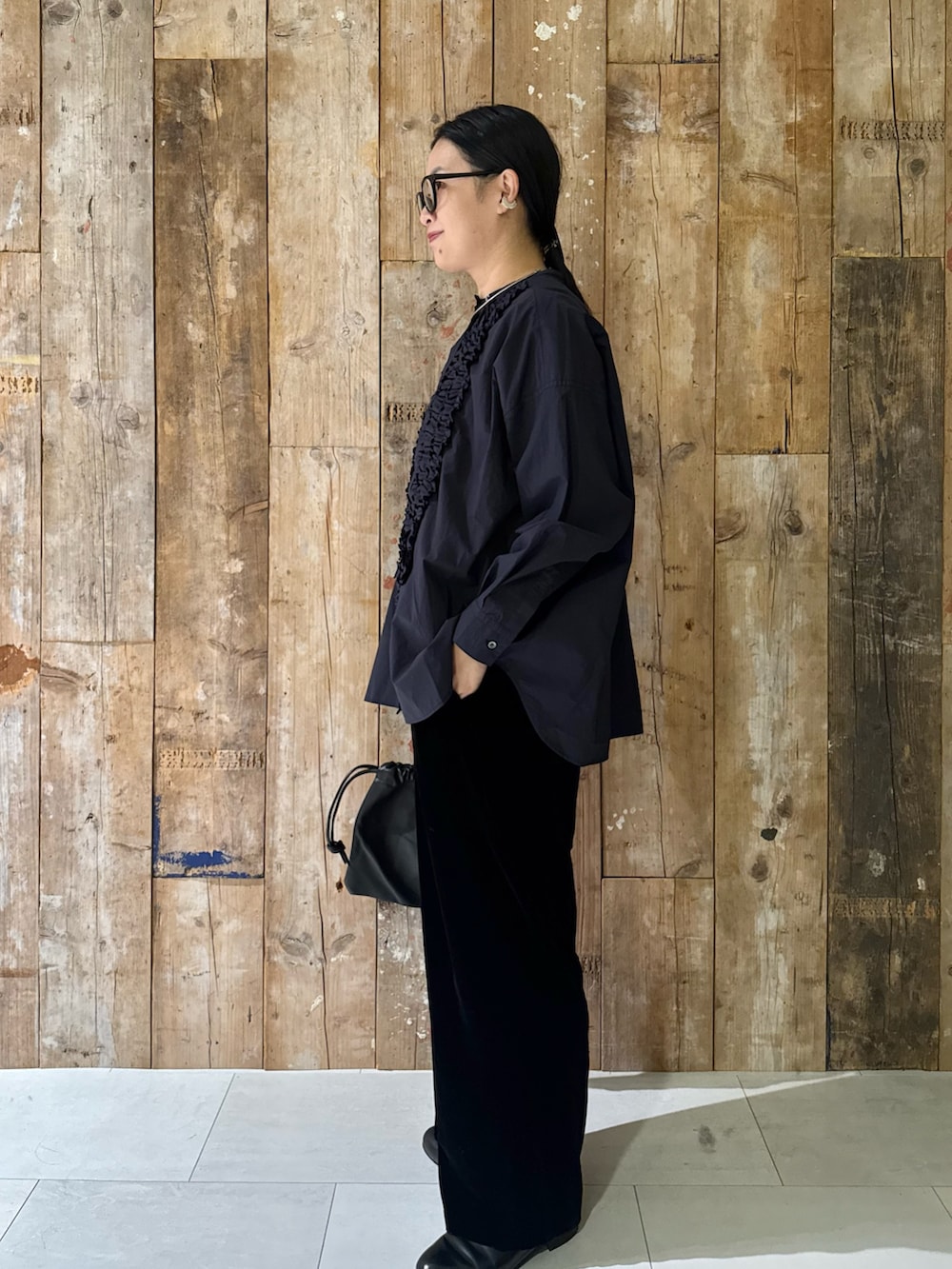 人気のコットンフリルワイドシャツが
