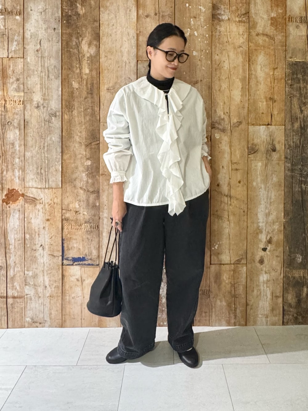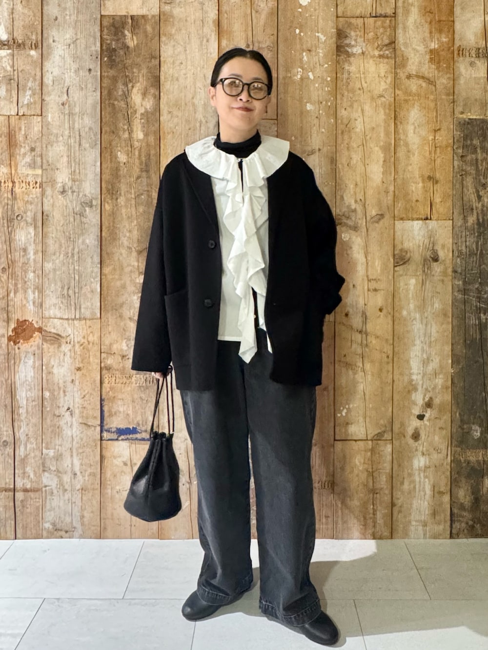 いつものシックなブラックコーデに