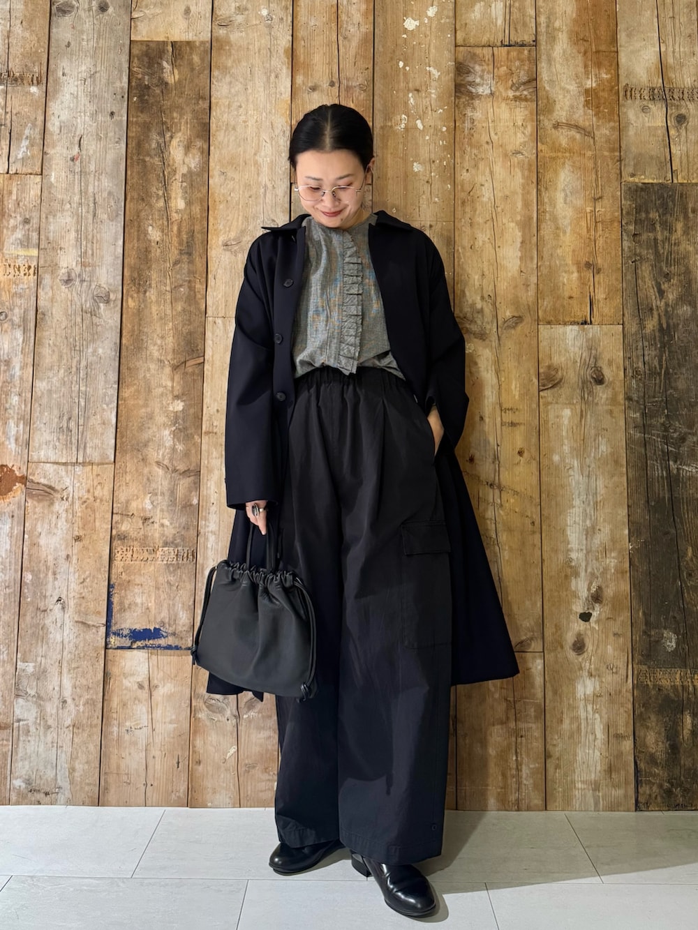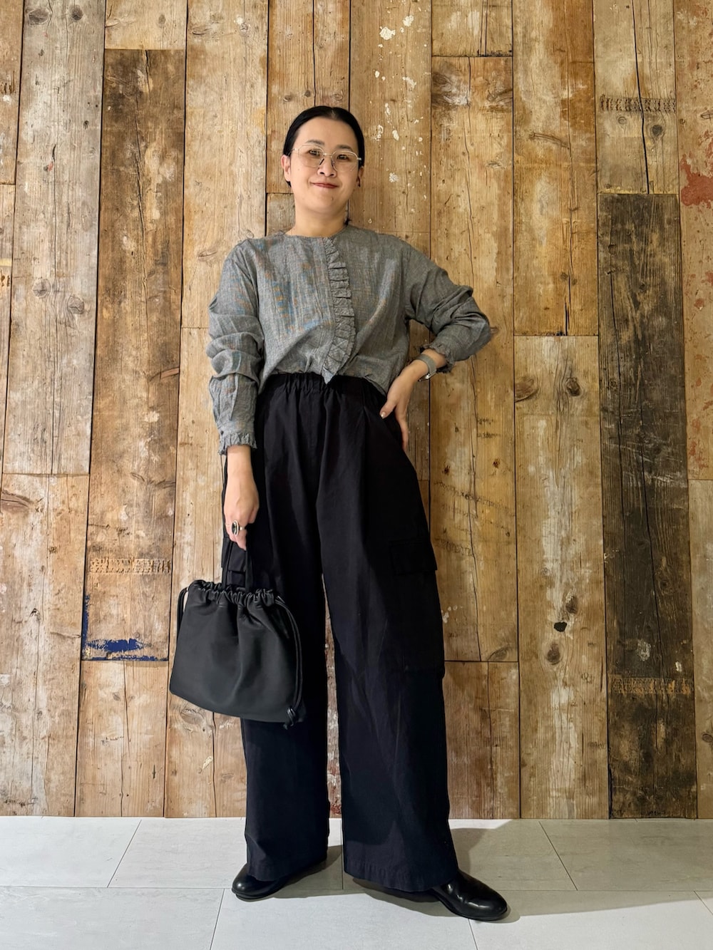 フリルシャツを少しインして
