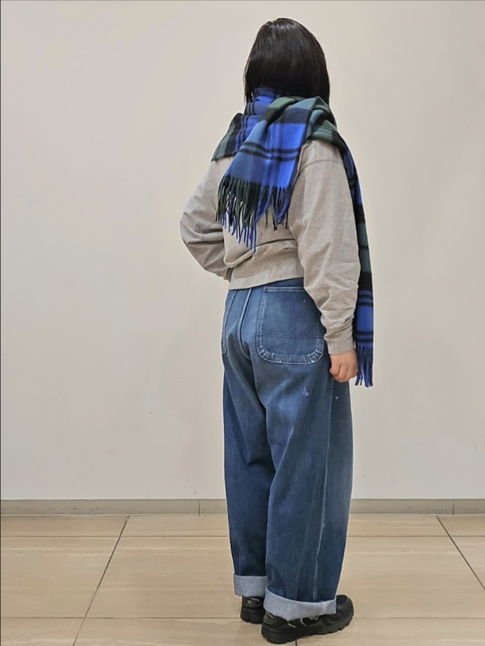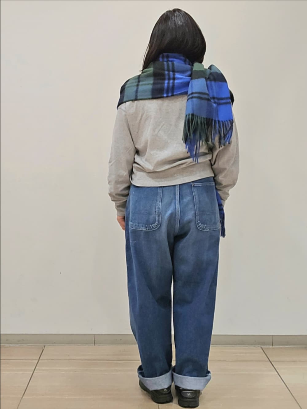 体型をカバーしてくれるお気に入りのトップスに、少しルーズなシルエットが可愛いデニムをロールアップして履いてみました!