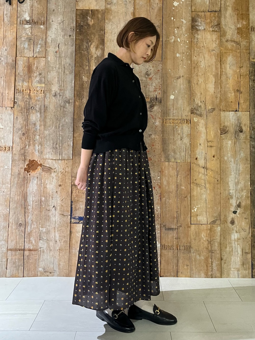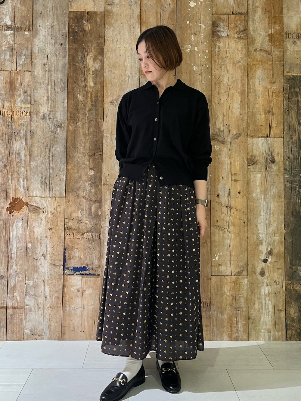 コットンポロニットはスカートにもパンツにも合わせやすい丈感で、便利アイテムです。