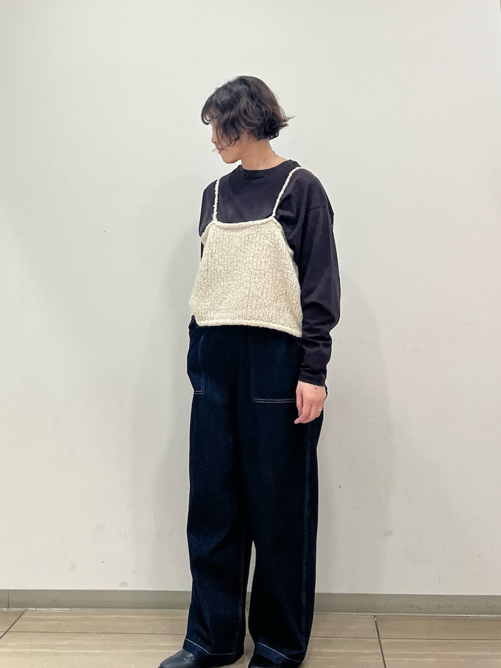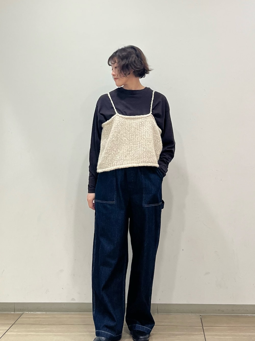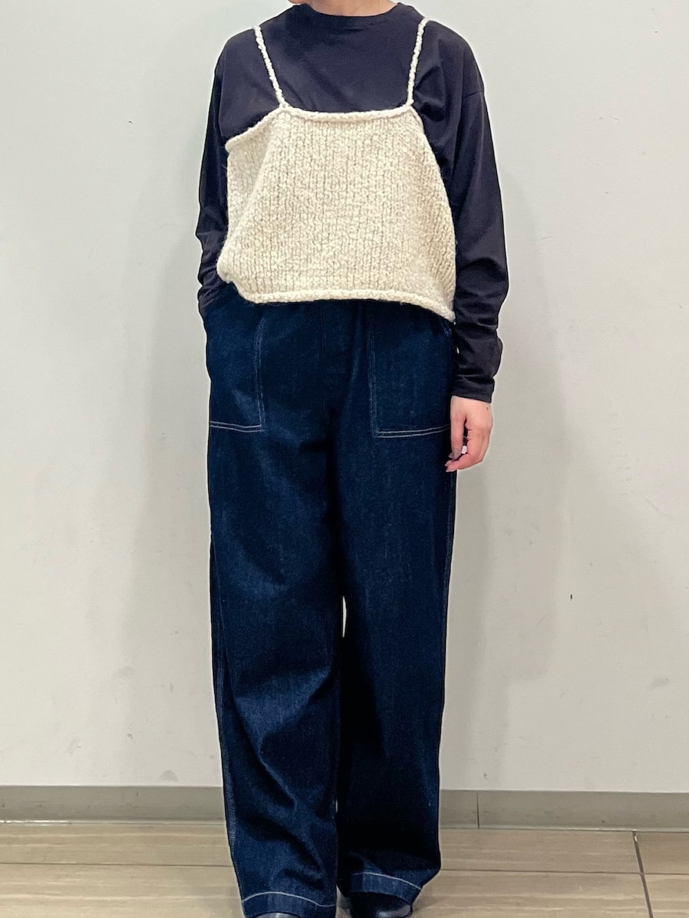 カットソーやシャツと重ねて色々なコーディネートが楽しめます。