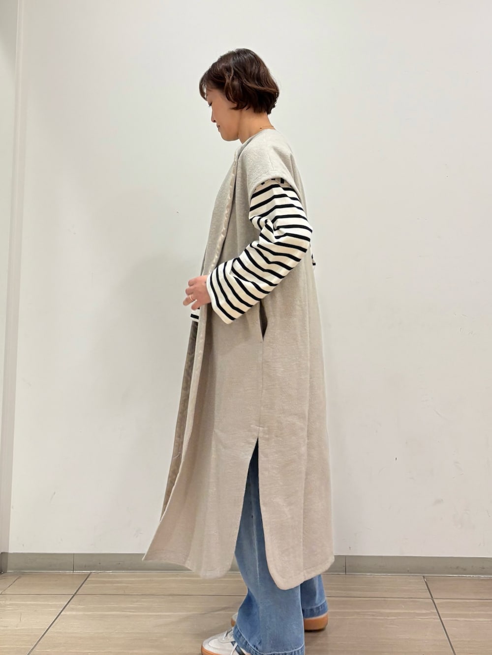 ロングジレは羽織りにもワンピースにもなる優れものです。