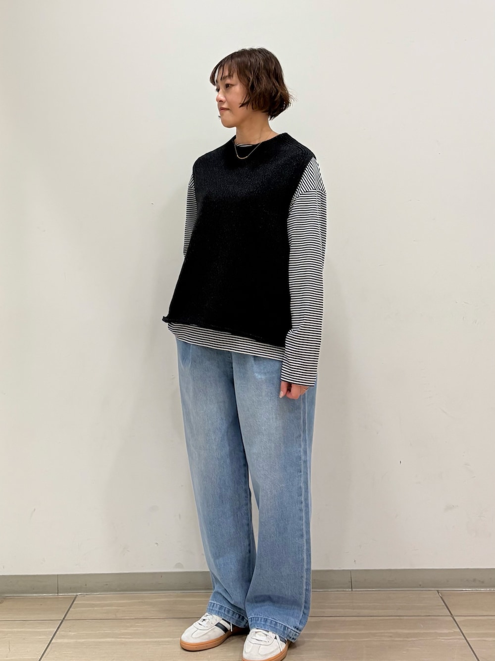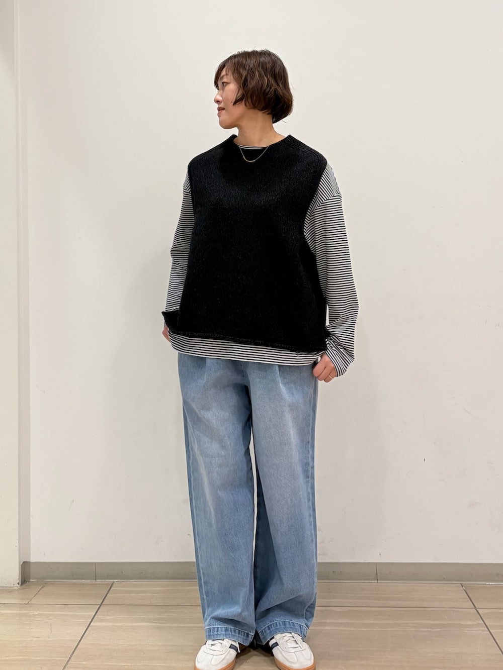 程よいゆとりの身幅でカットソーやシャツと重ね着しやすく、着回しのきくアイテムです♪