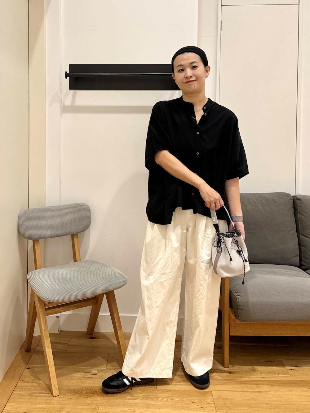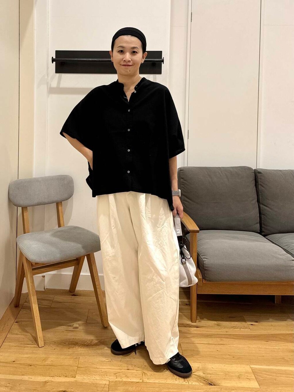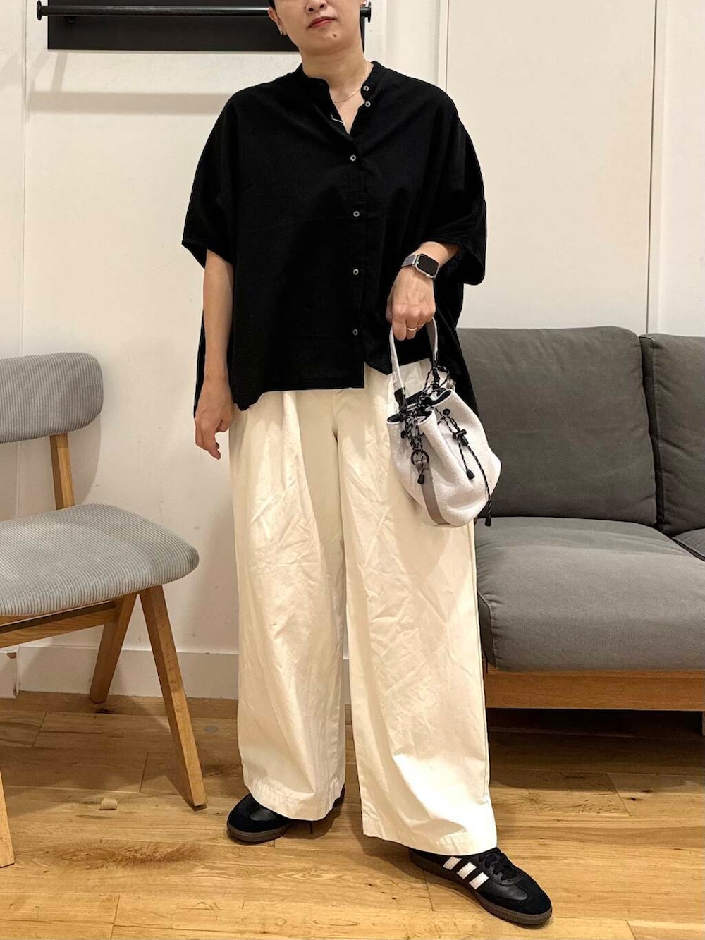 合わせたパンツはかぐれの コットン2タックワイドパンツ。