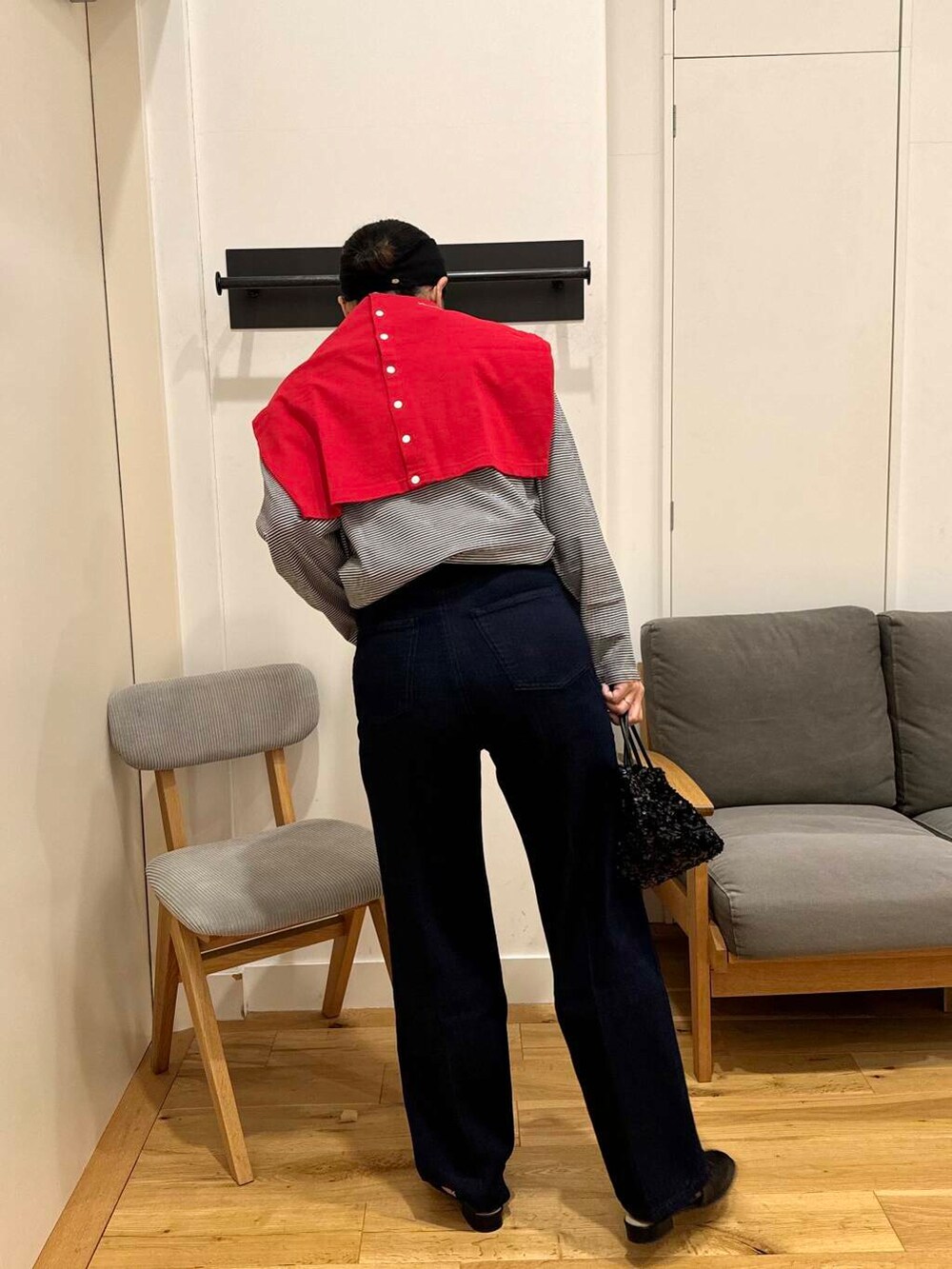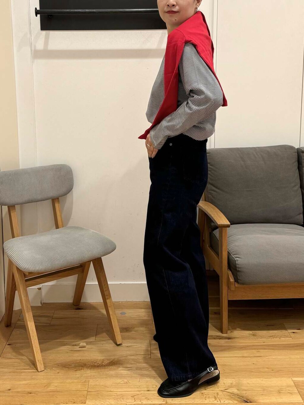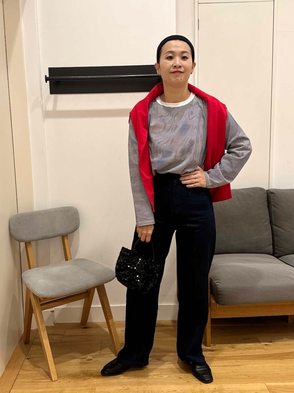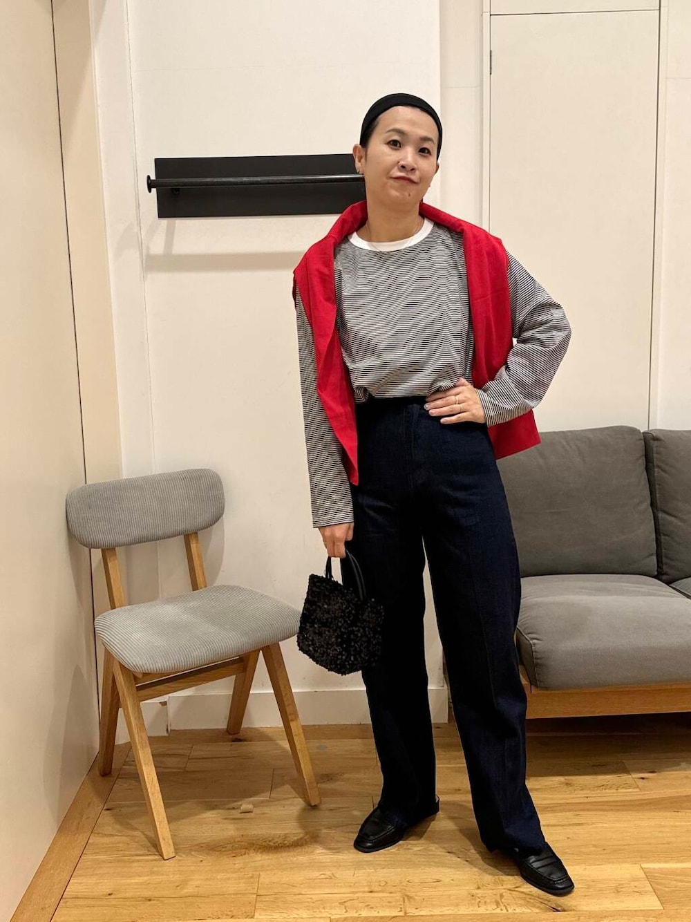 ボーダーと差し色の赤で合わせたくなる^^