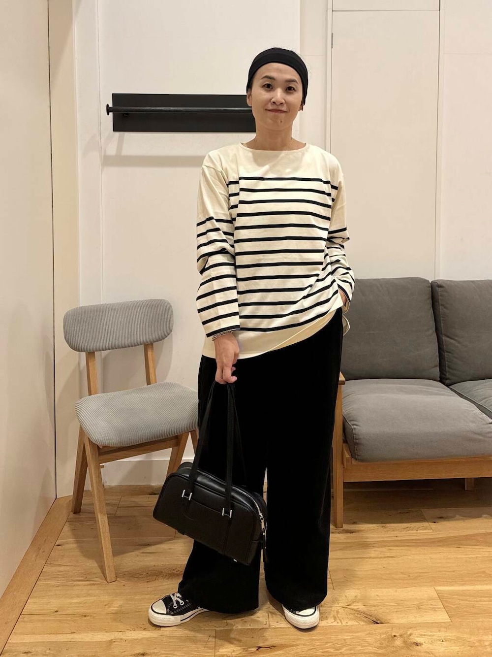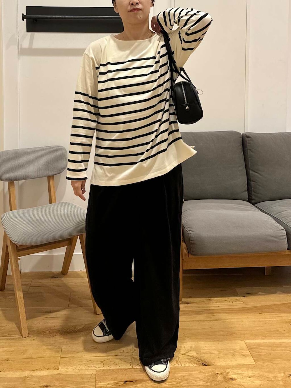 ボーダー+イージーパンツでゆるめだけど、