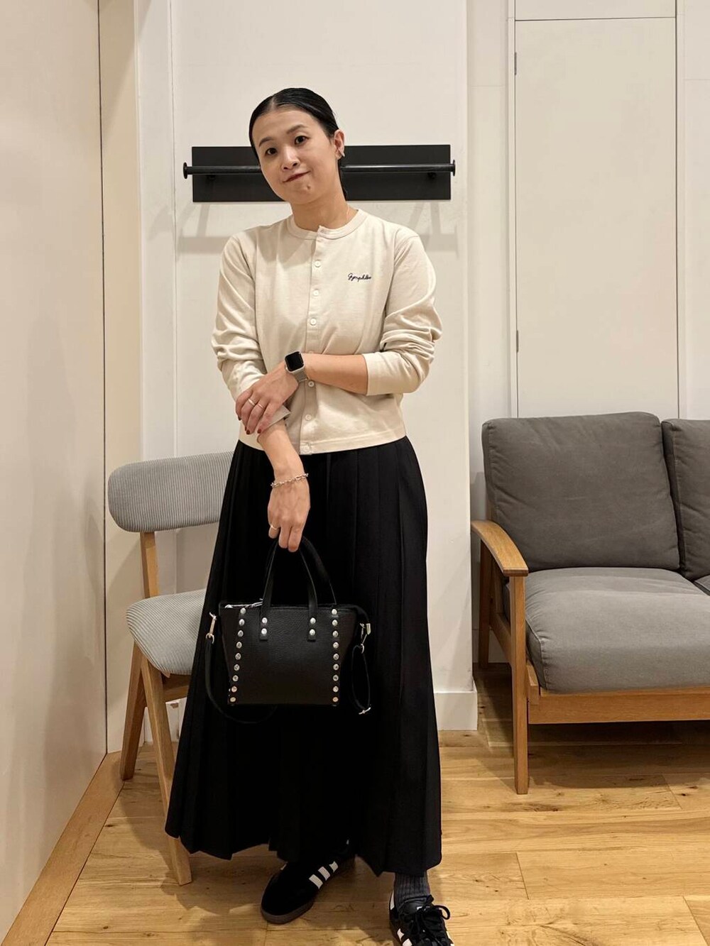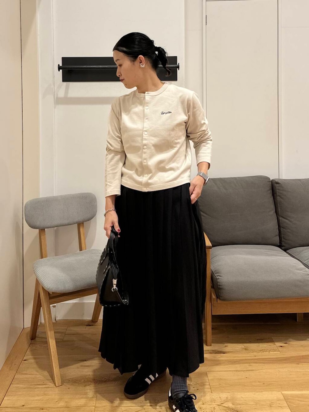 カーディガンとスカートで