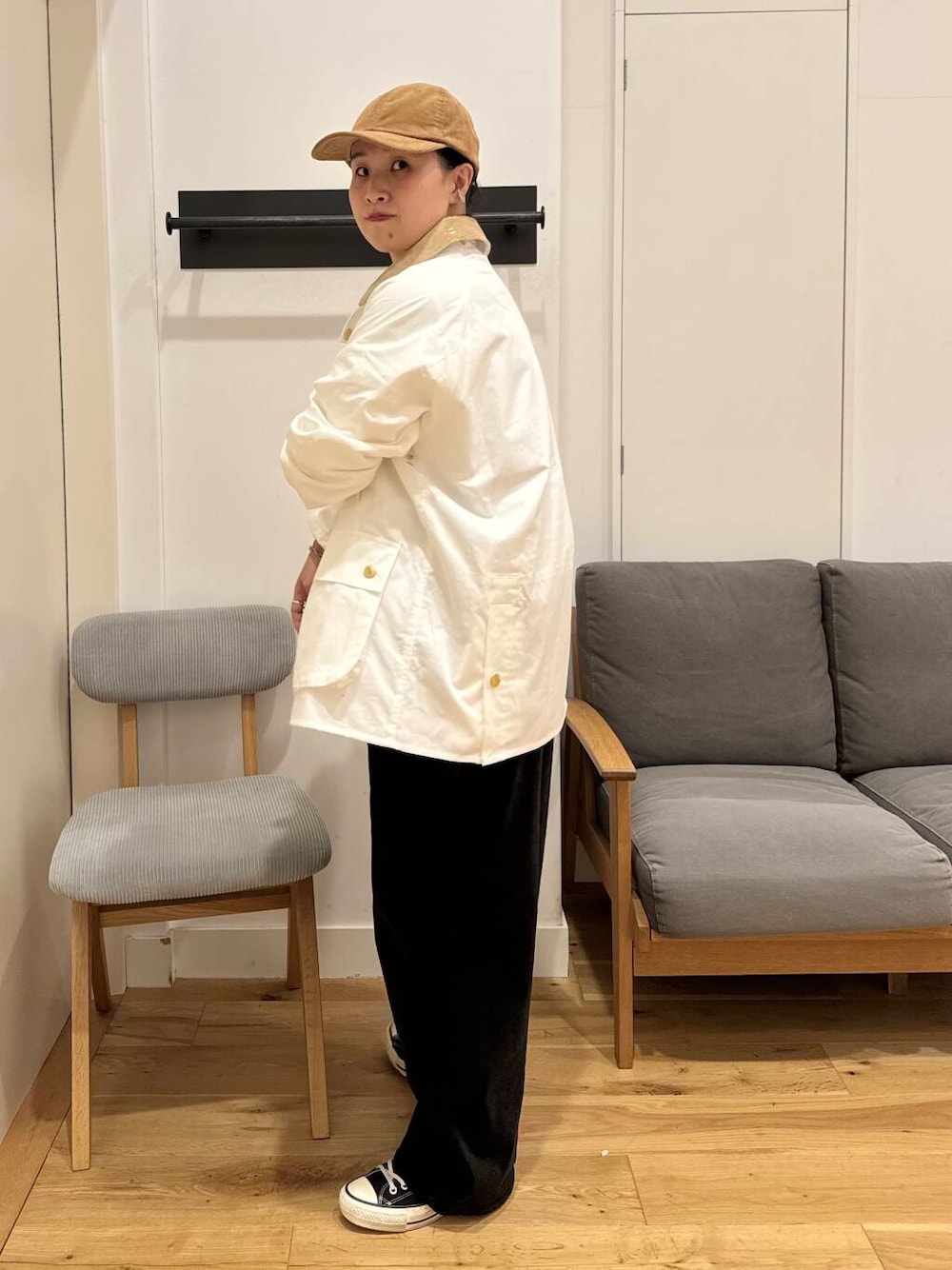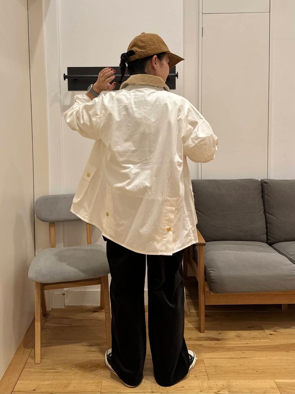 私は白のBarbourの襟のコーデュロイに