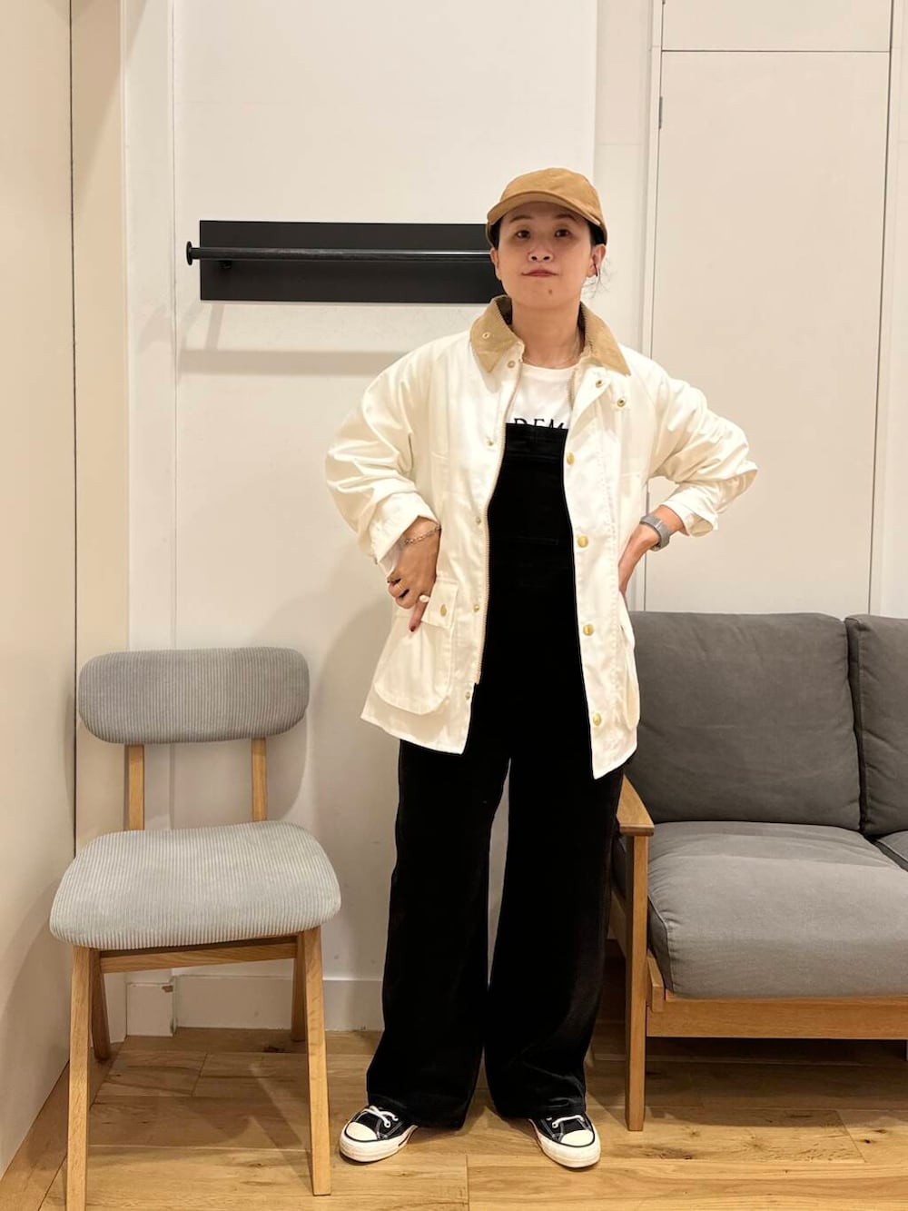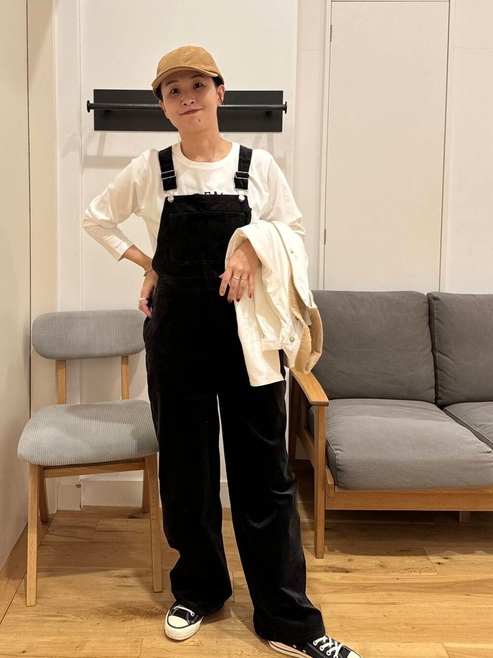 リンクさせておなじカラーのコーデュロイキャップを
