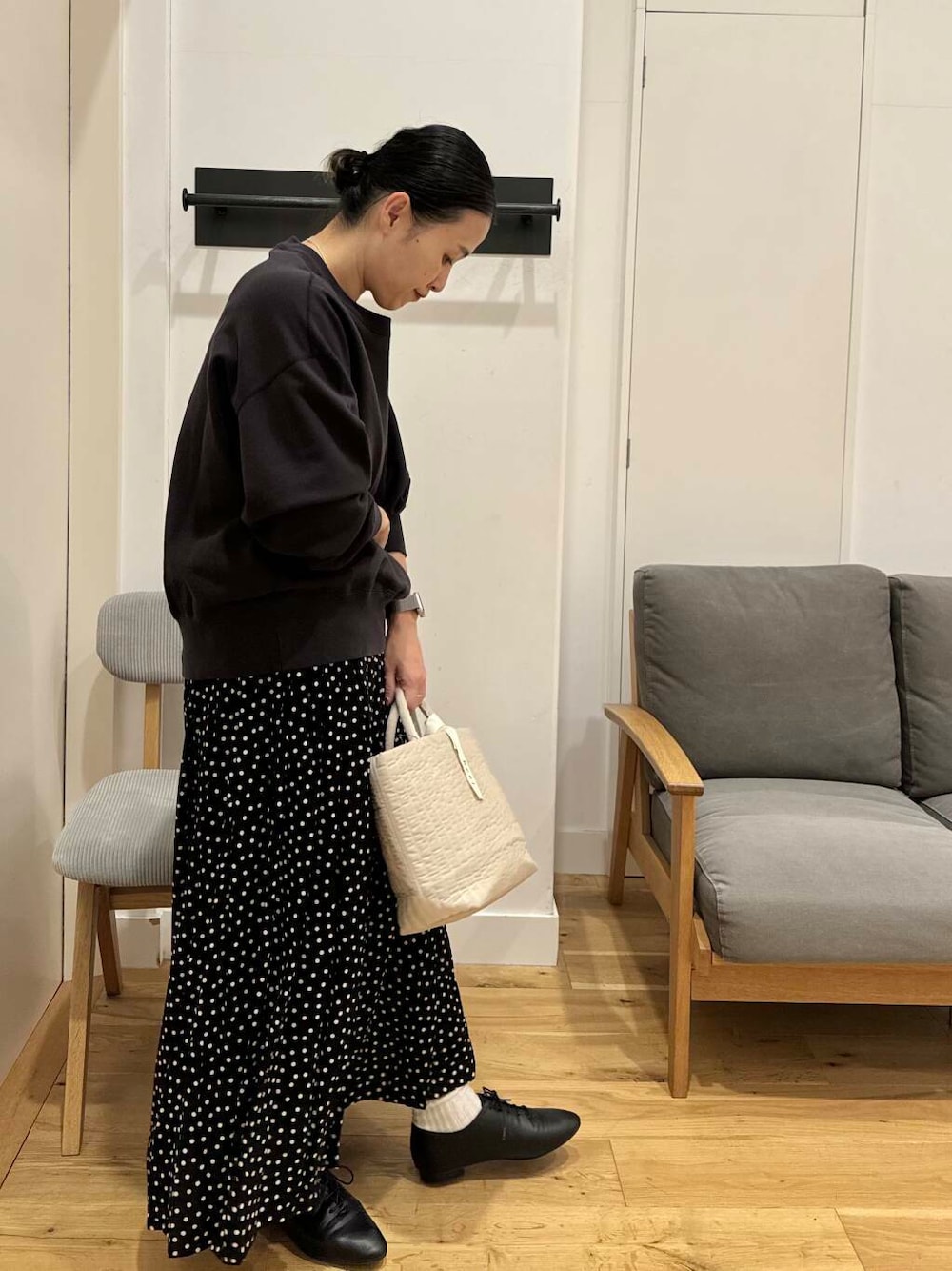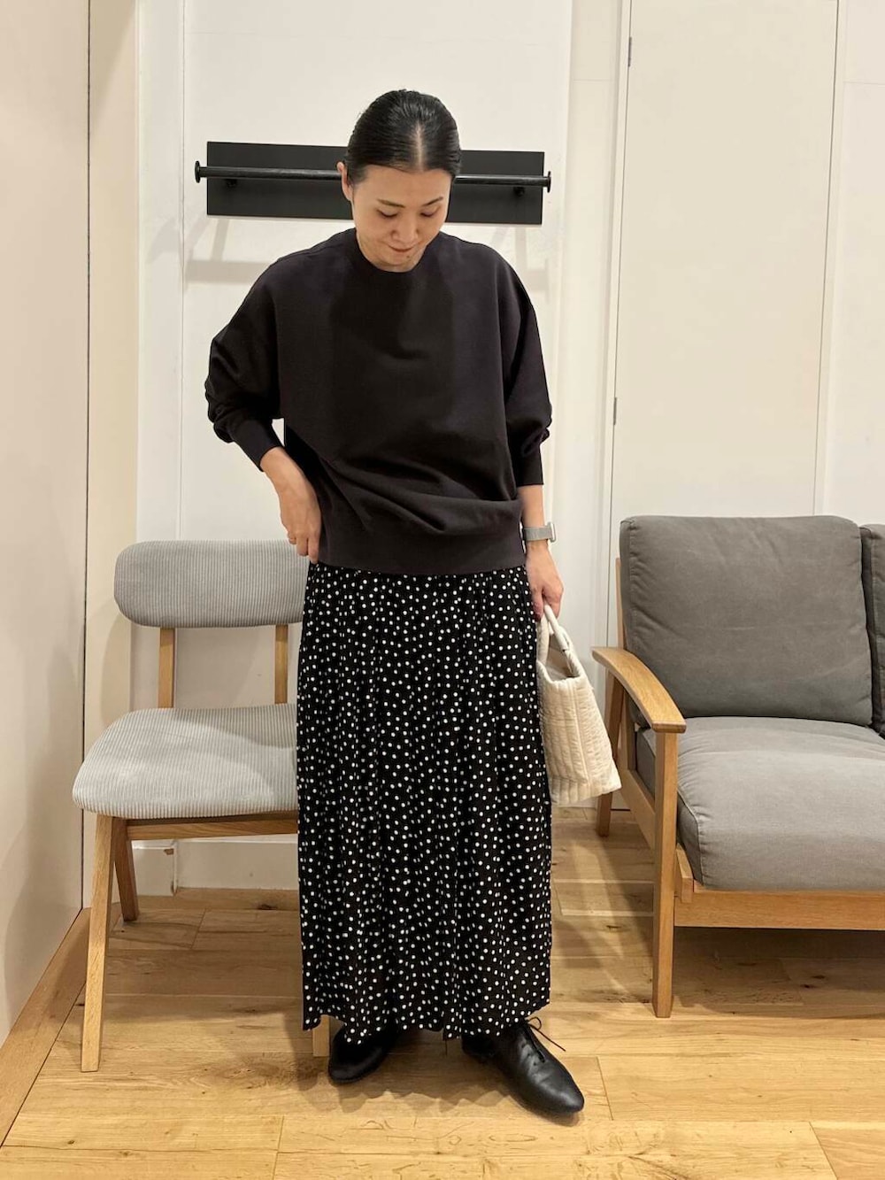 ドットスカートの甘めなアイテムに